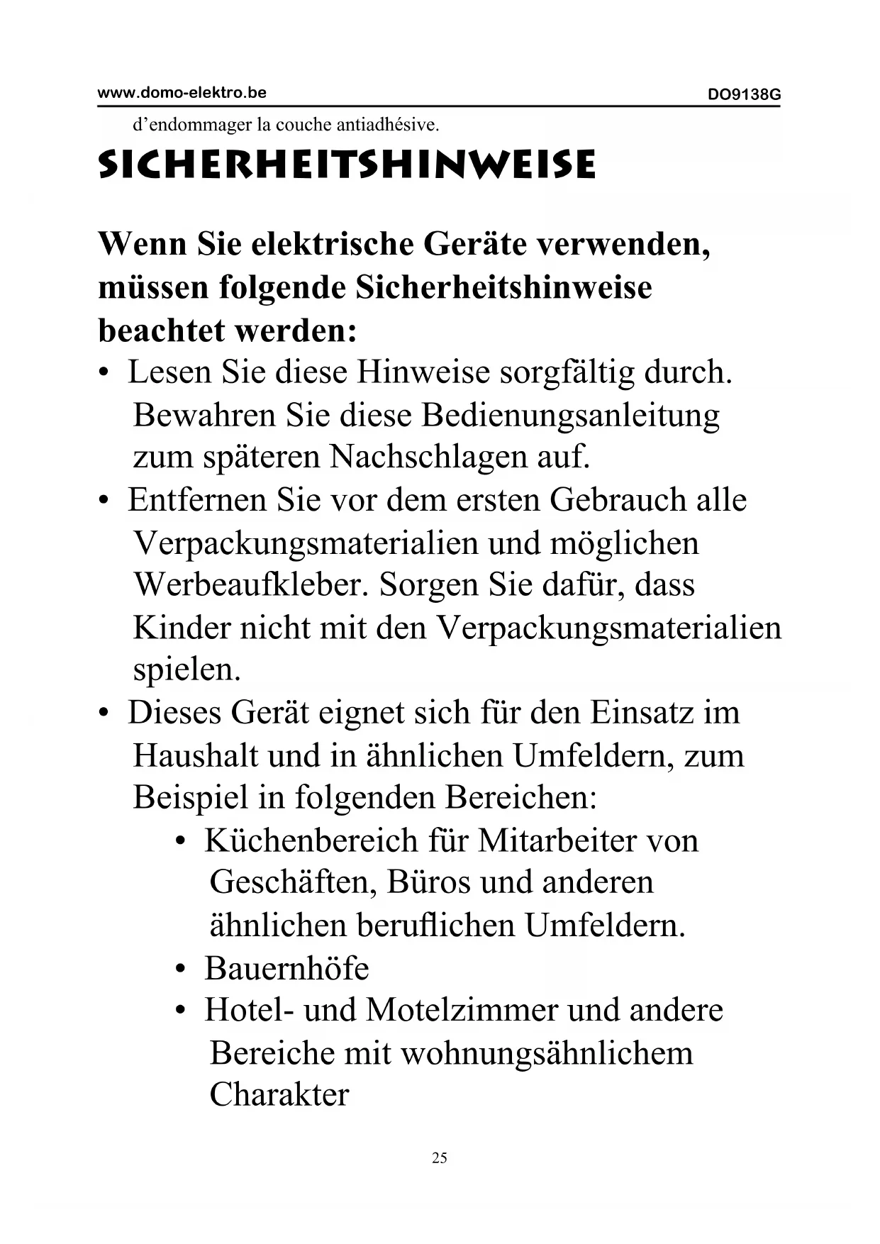 BEDIENUNGSANLEITUNG DO9138G DOMO