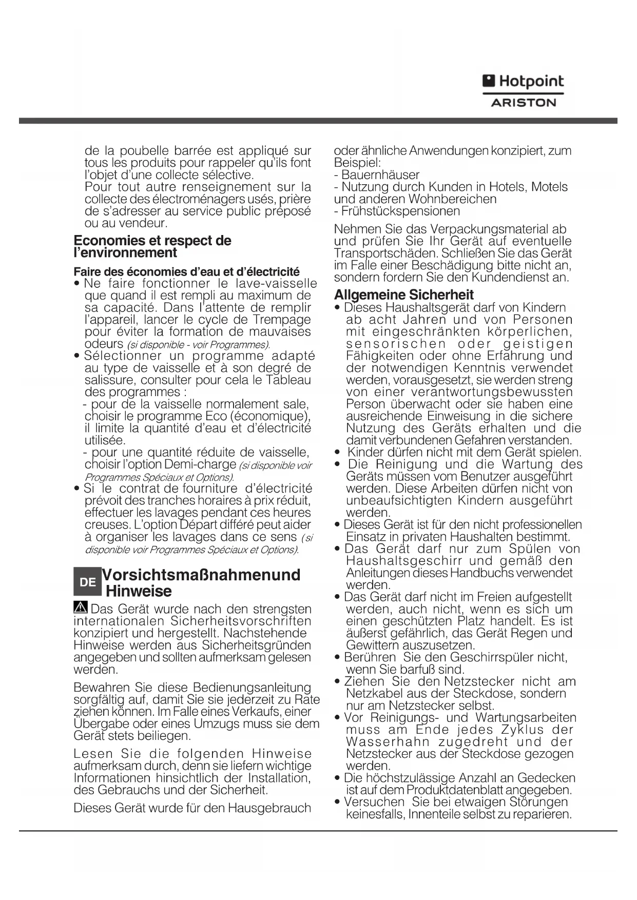 LFF 8M132 EU - Geschirrspüler HOTPOINT - Kostenlose Bedienungsanleitung