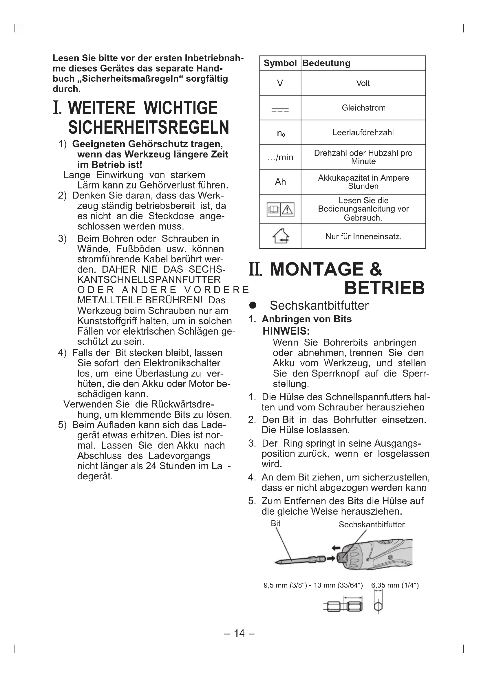 . MONTAGE & BETRIEB Sechskantbitfutter
