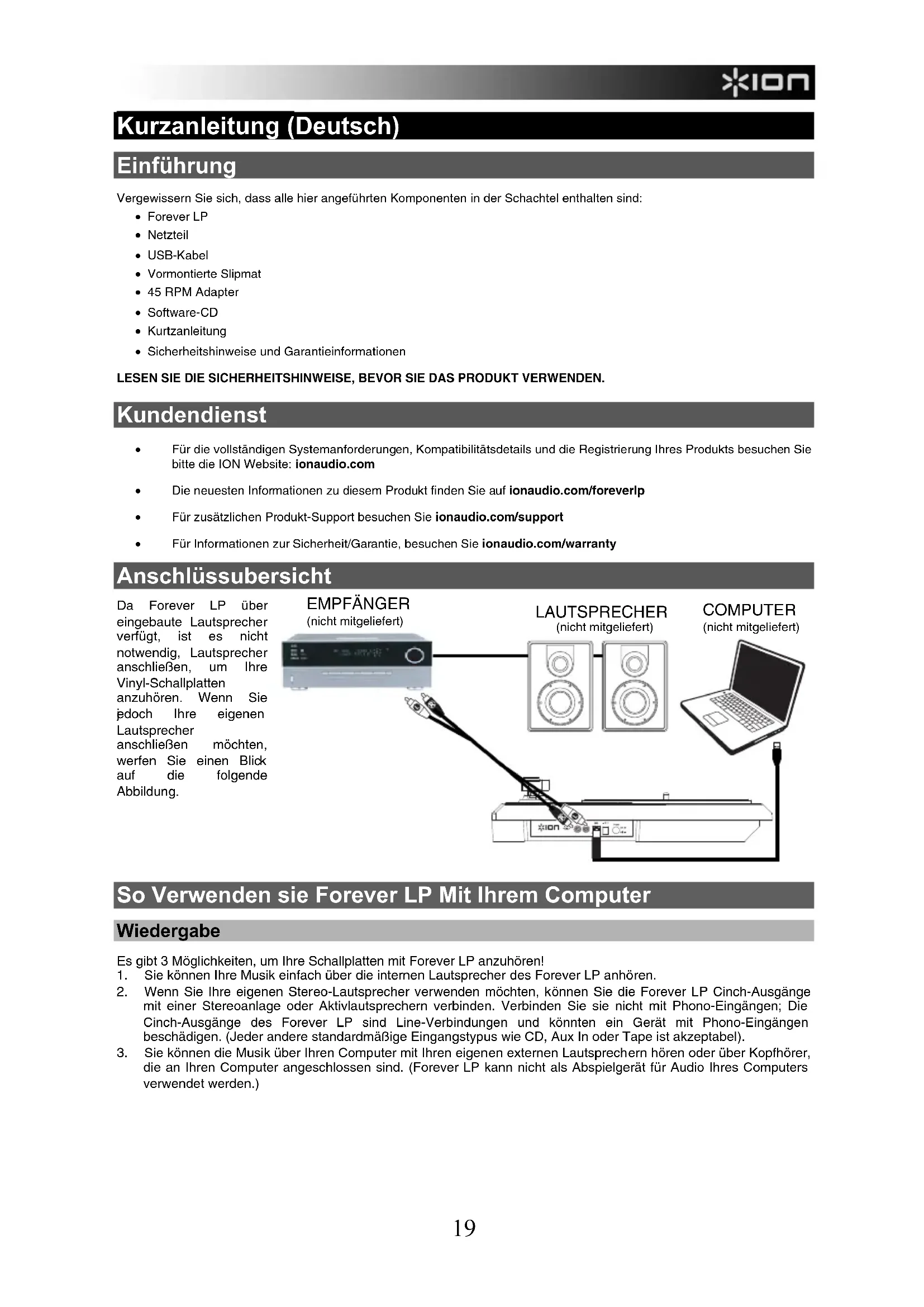 - Die neuesten Informationen zu diesem Produkt finden Sie auf ionaudio.com/foreverlp