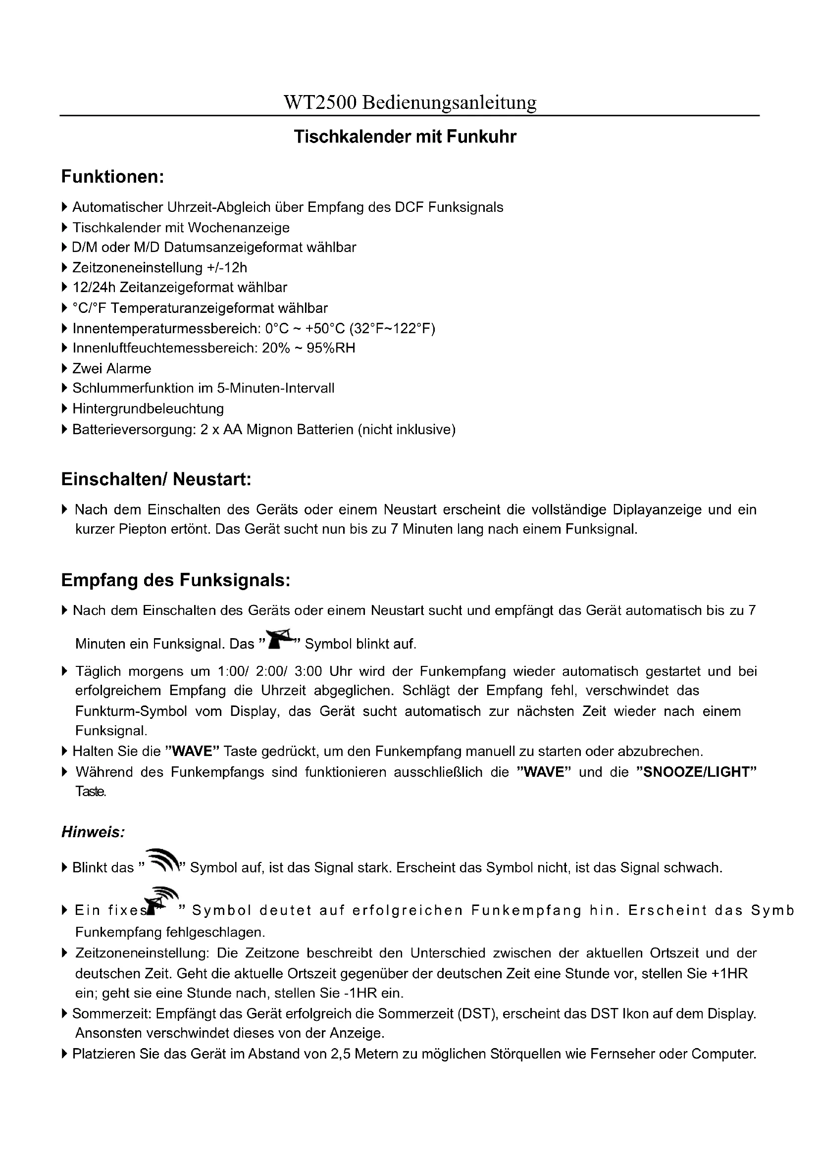 BEDIENUNGSANLEITUNG WT 2500 TECHNOLINE
