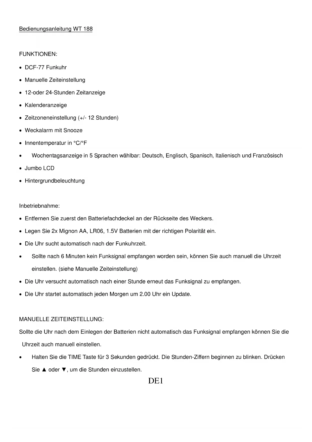 BEDIENUNGSANLEITUNG WT 188 TECHNOLINE