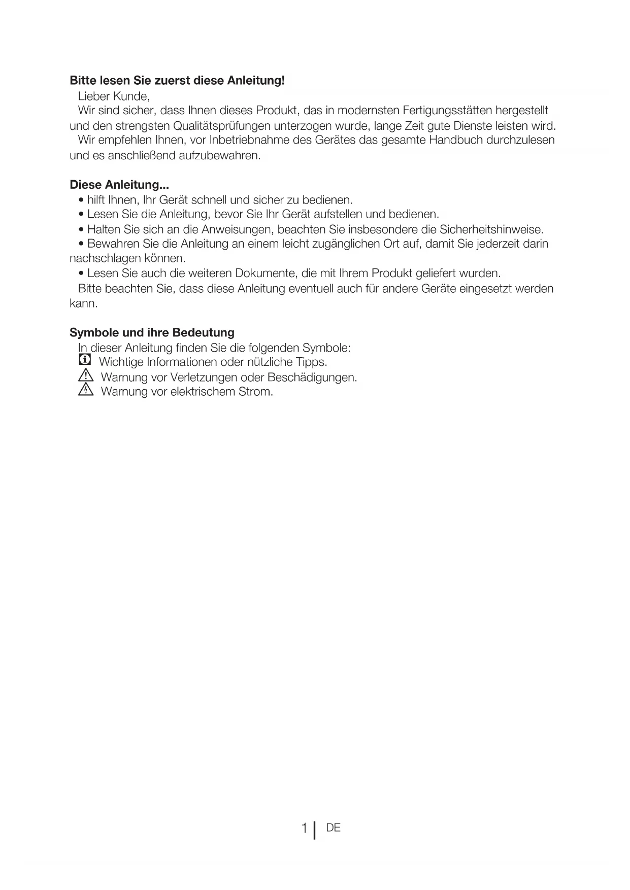 - Lesen Sie die Anleitung, bevor Sie Ihr Gerät aufstellen und bedienen.
