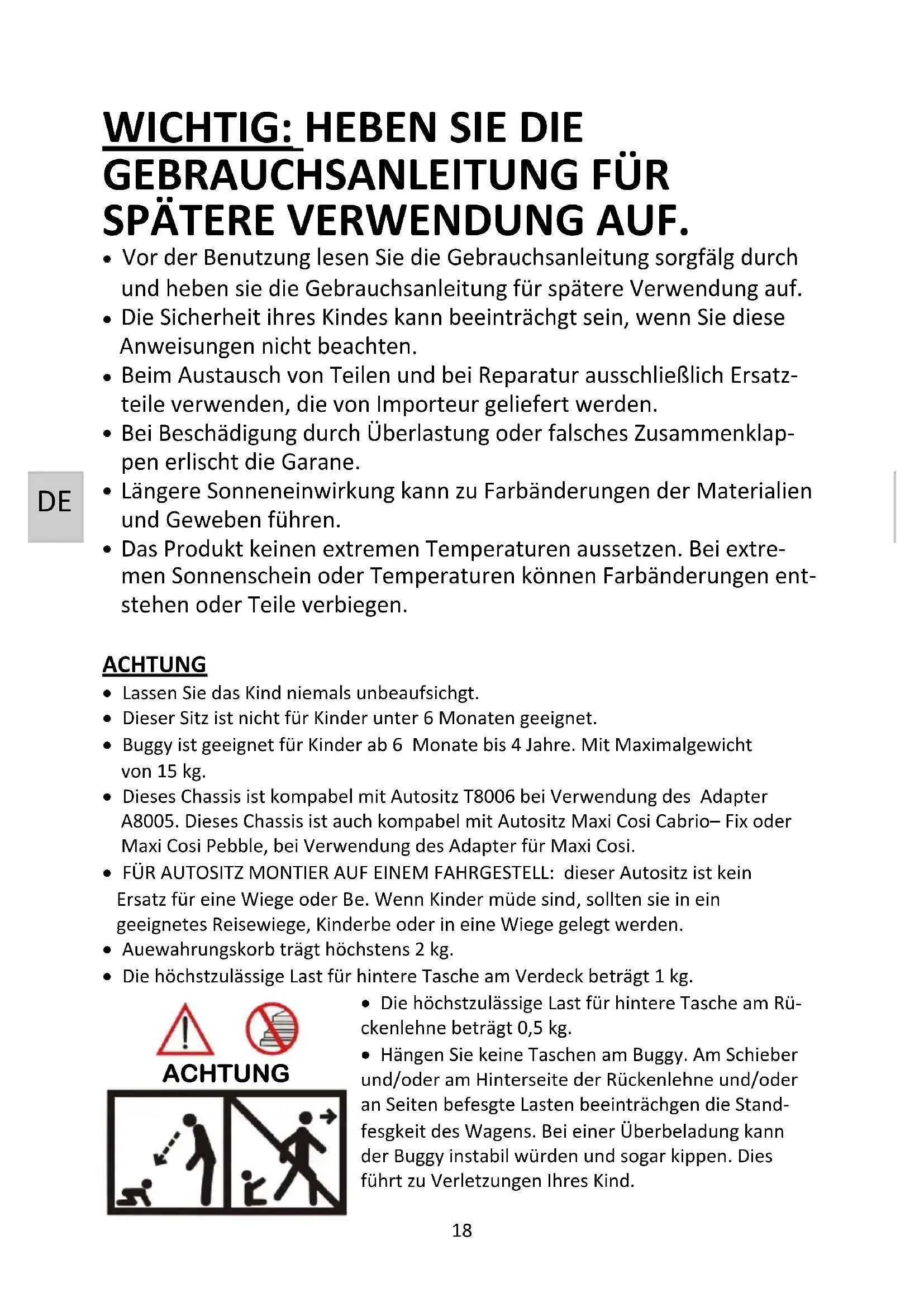 - Dieser Buggy ist nicht geeignet zum Joggen oder Skaten.