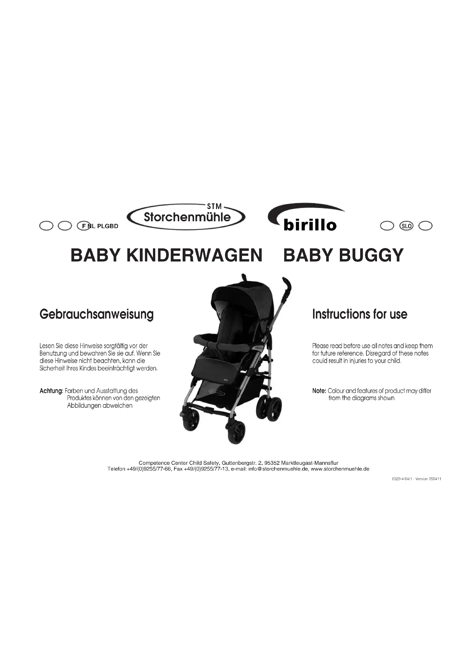 BEDIENUNGSANLEITUNG Birillo buggy Storchenmuhle