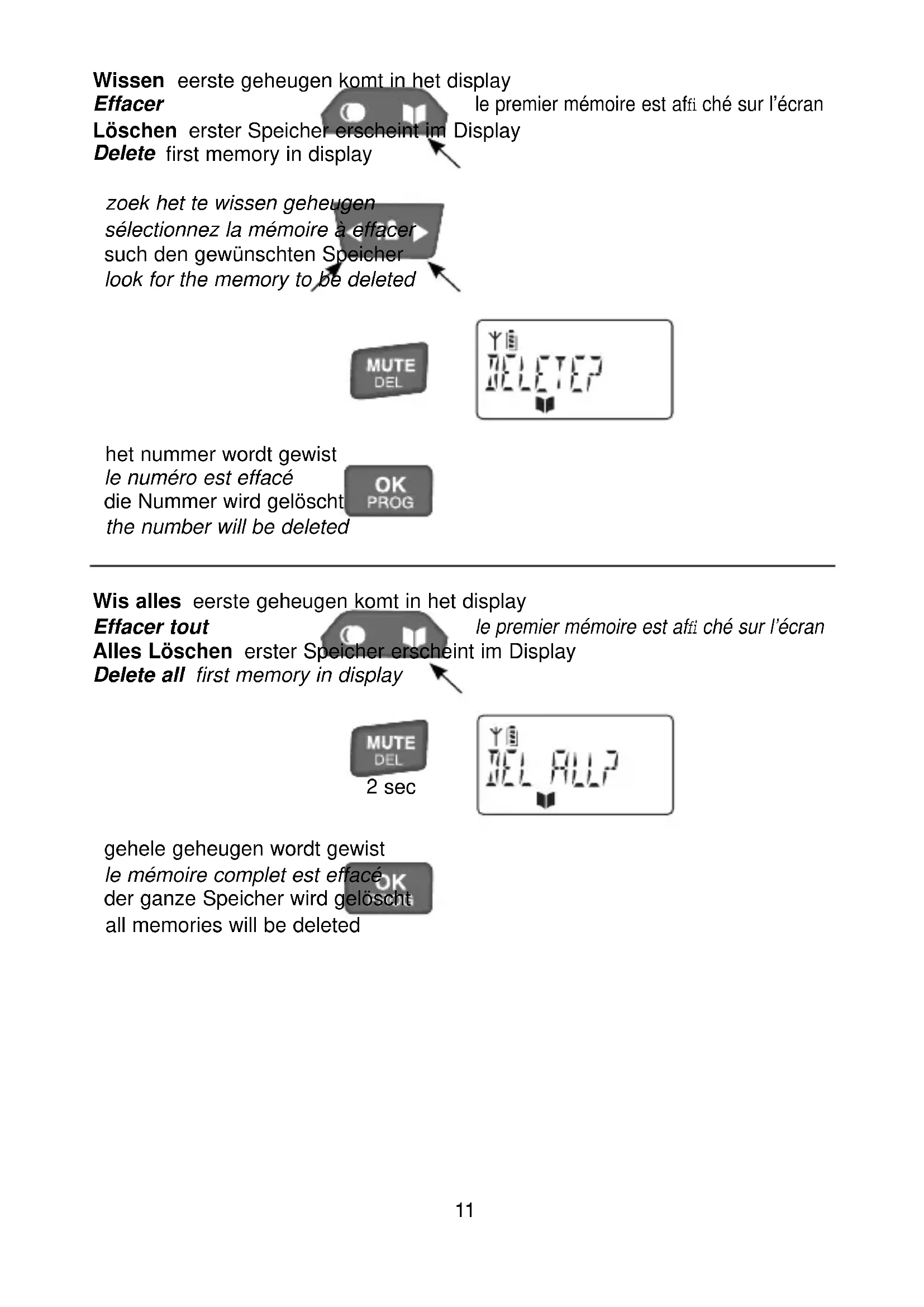 gehele geheugen worden gewist le mémoire complet est efface der ganze Speicher wird gelöscht all memories will be deleted
