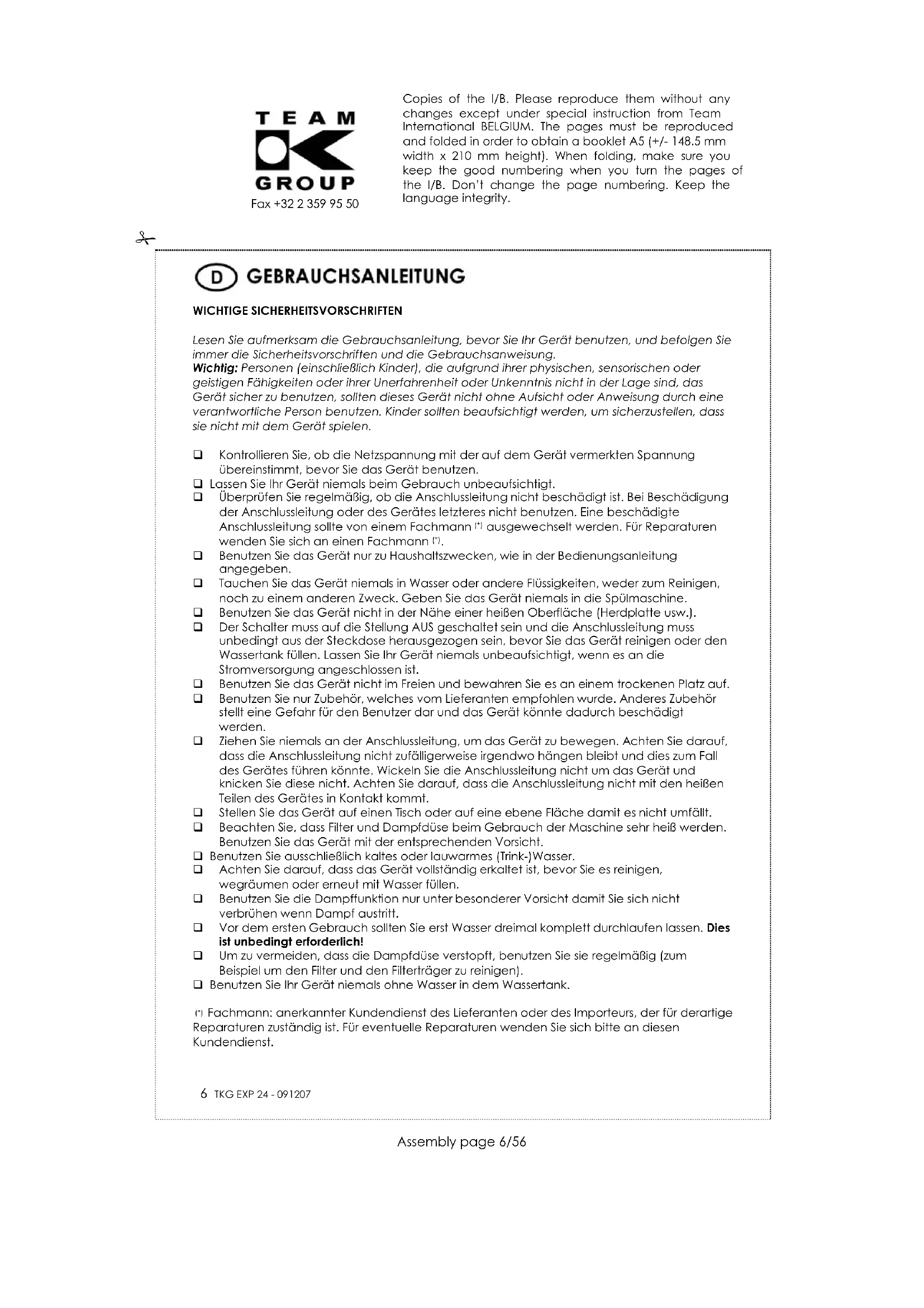 BEDIENUNGSANLEITUNG TKG EXP 24 KALORIK