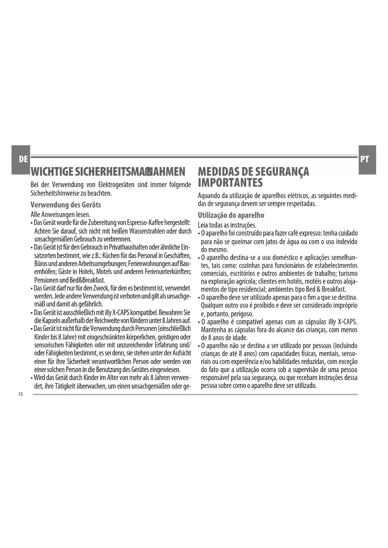 - Das Gerät ist ausschließlich mit illy X·CAPS kompatibel. Bewahren Sie die Kapseln außerhalb der Reichweite von Kindern unter 8 Jahren auf.