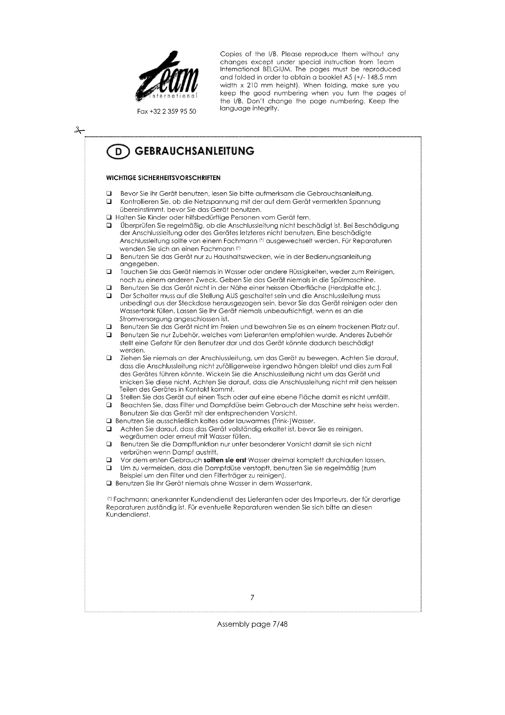 Laden Sie die Anleitung für Ihr Kaffeemaschine kostenlos im PDF-Format! Finden Sie Ihr Handbuch EXP 5 - TEAM und nehmen Sie Ihr elektronisches Gerät wieder in die Hand. Auf dieser Seite sind alle Dokumente veröffentlicht, die für die Verwendung Ihres Geräts notwendig sind. EXP 5 von der Marke TEAM.