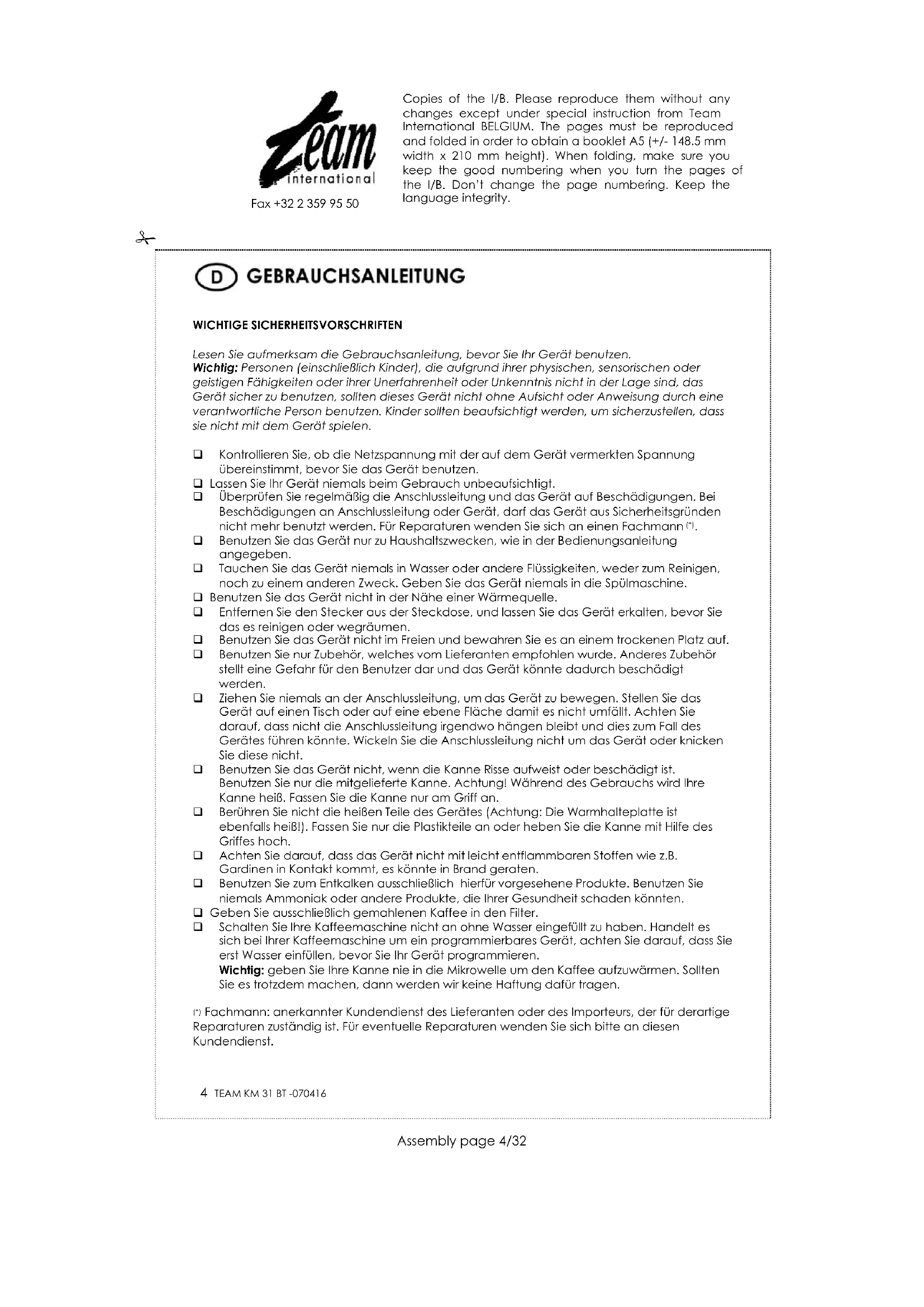 BEDIENUNGSANLEITUNG KM 31 BT TEAM