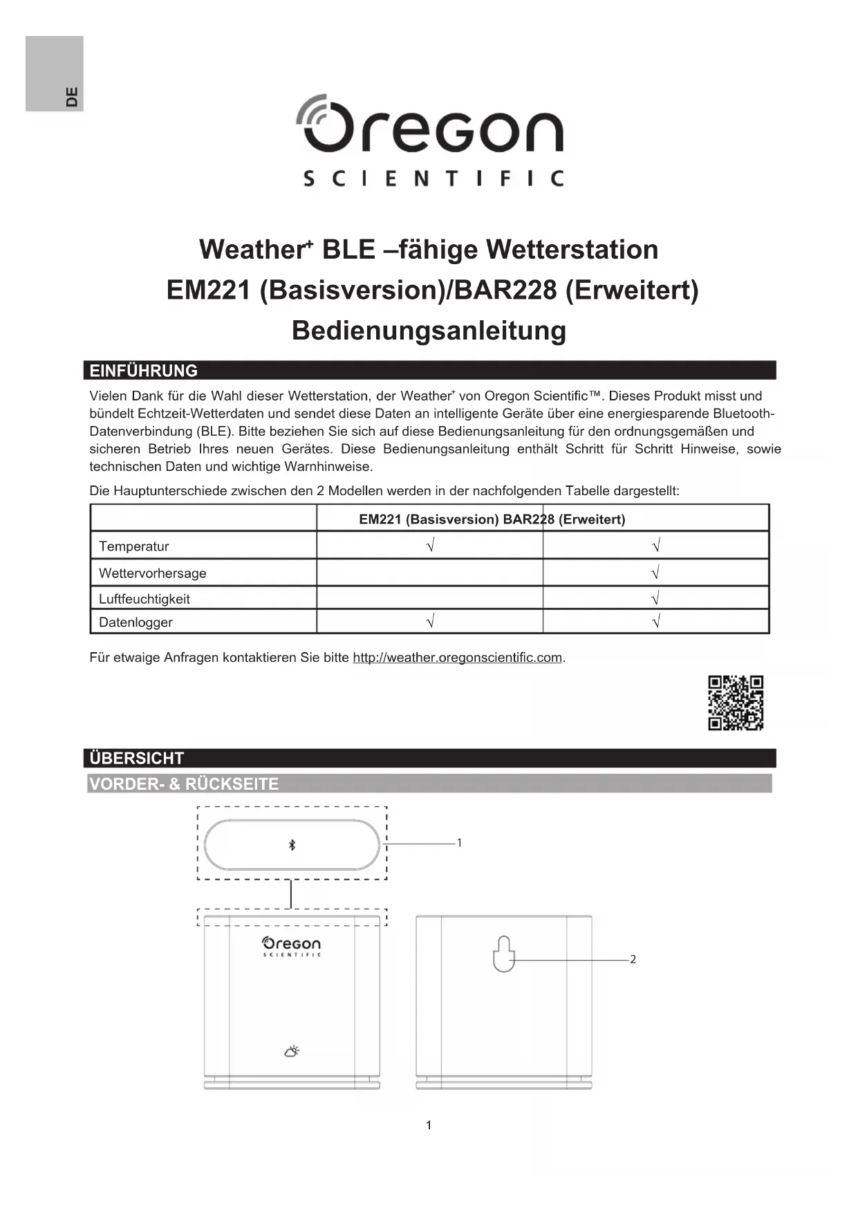 Für etwaige Anfragen kontaktieren Sie bitte http://weather.oregonscientic.com. ÜBERSICHT