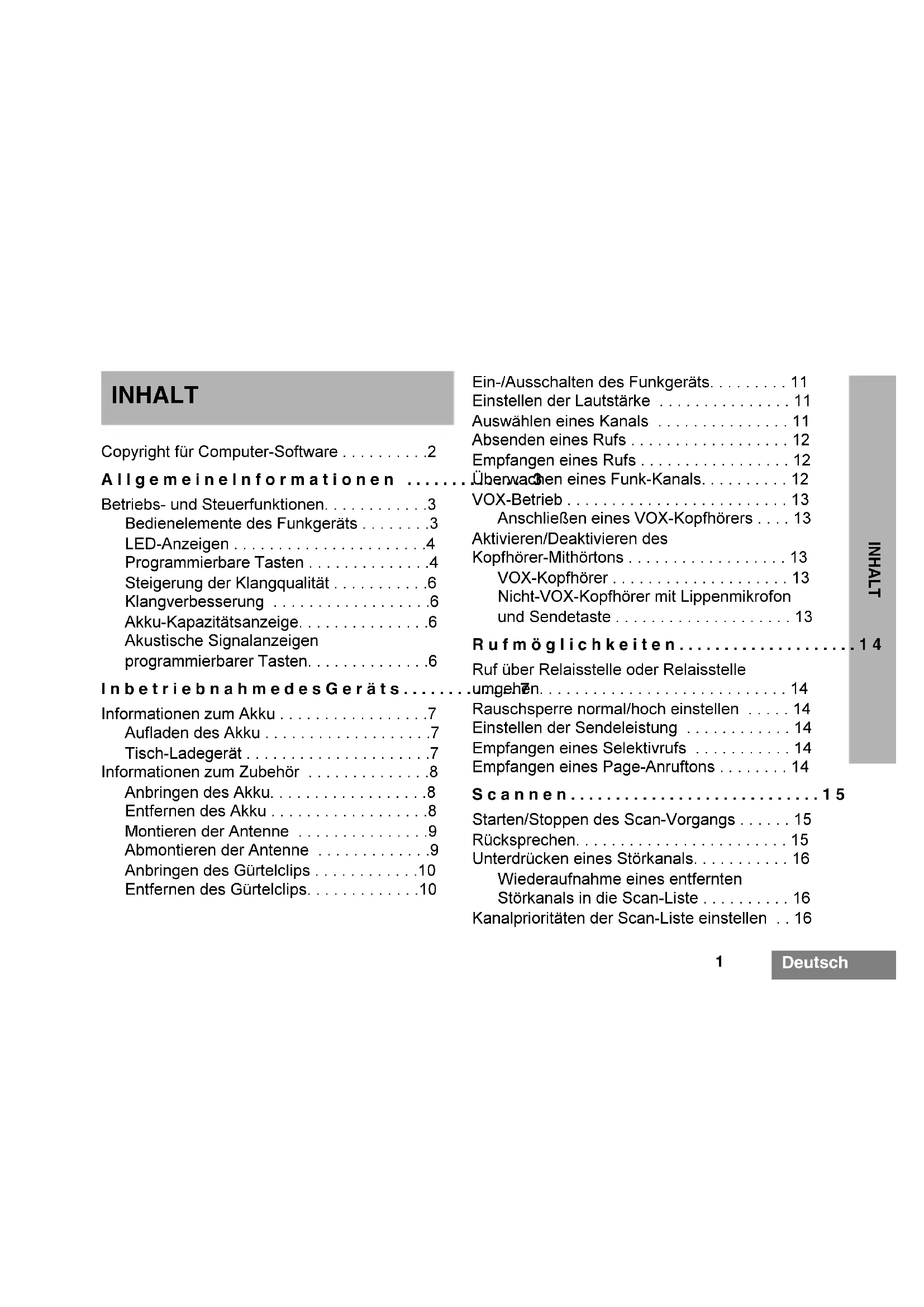 - Ch1 CP040_EN.fm Page 16 Thursday, October 2, 2003 10:53 AM1 Deutsch INHALT INHALT Copyright für Computer-Software p. 2
