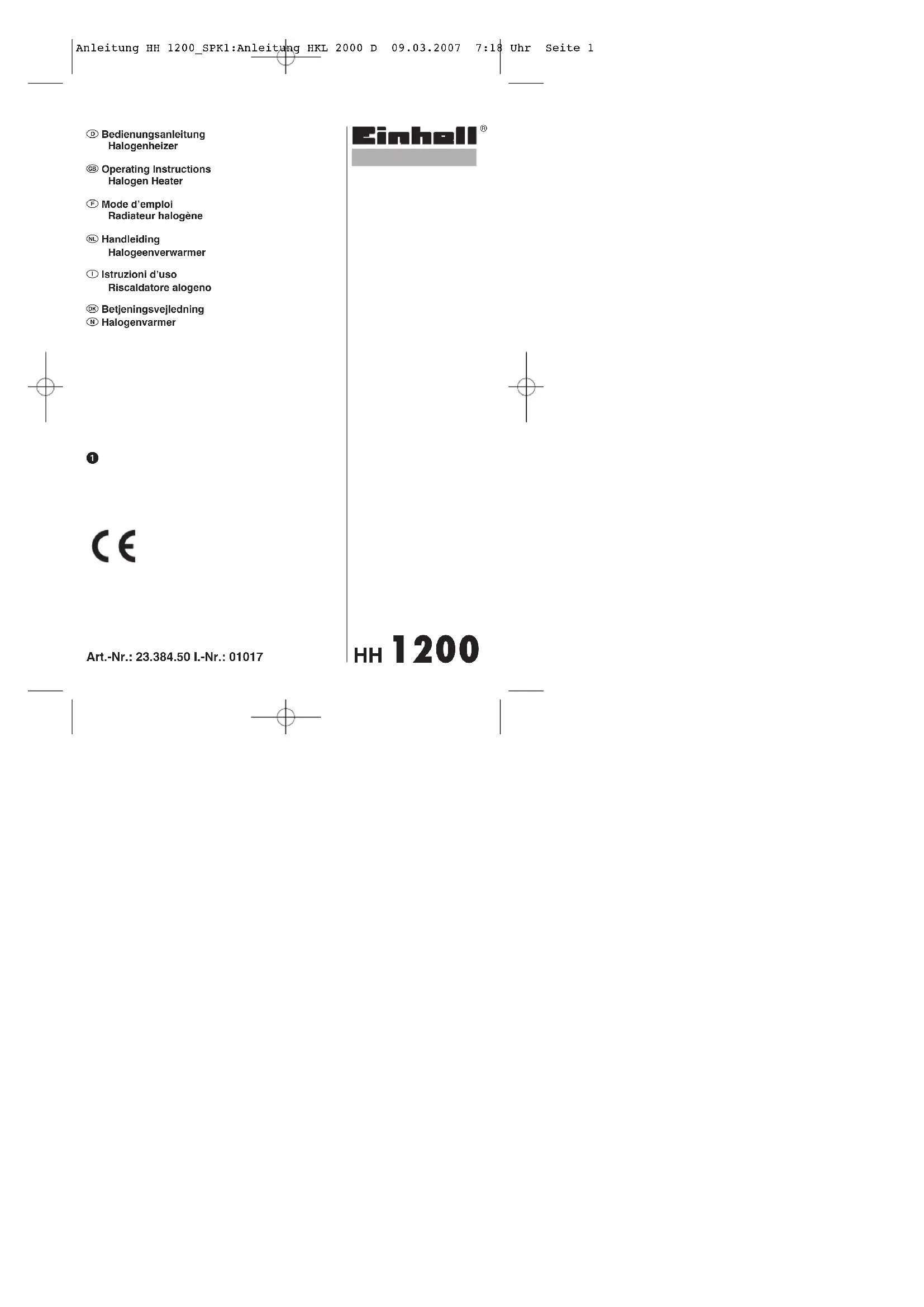 HH1200 - Heizung EINHELL - Kostenlose Bedienungsanleitung