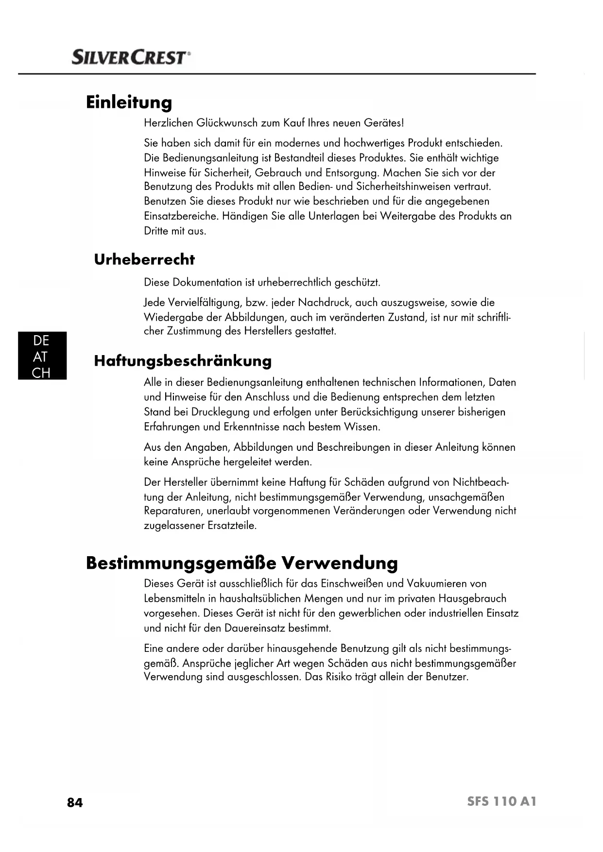 BEDIENUNGSANLEITUNG SFS 110 A1 SILVERCREST