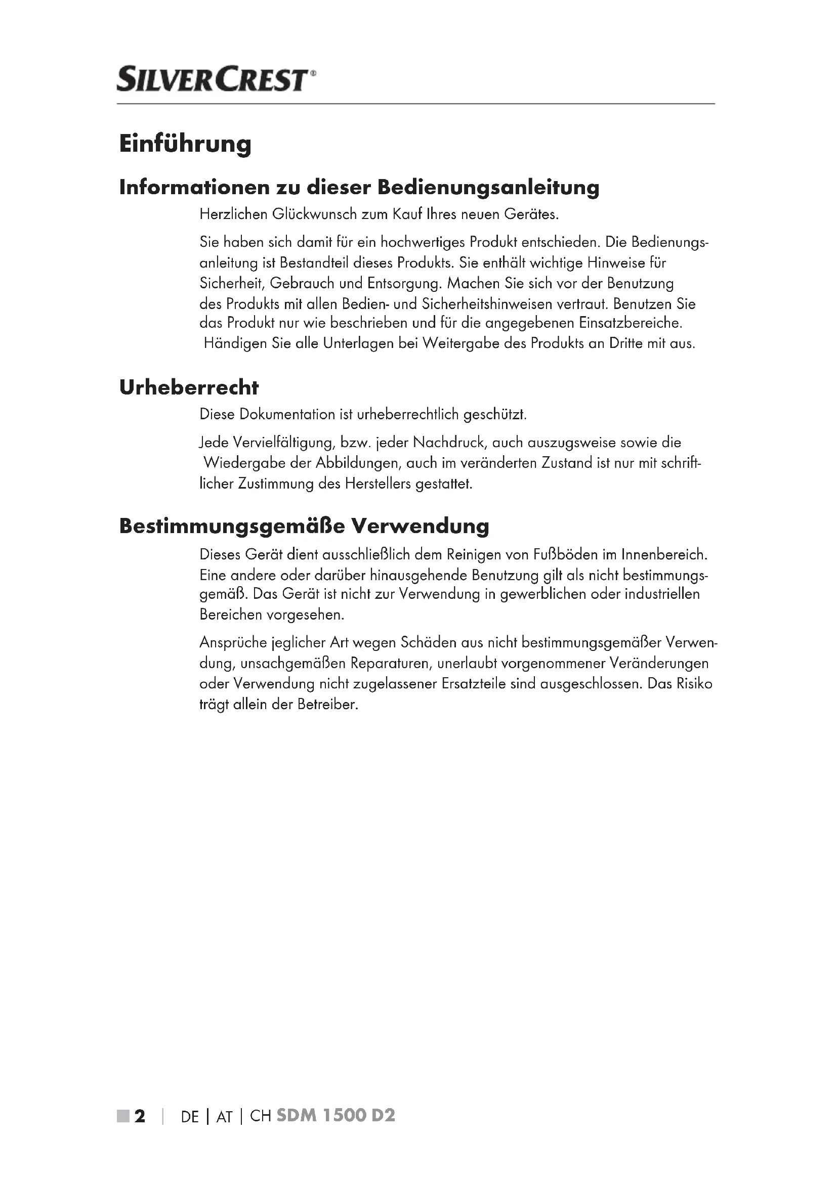 BEDIENUNGSANLEITUNG SDM 1500 B2 SILVERCREST