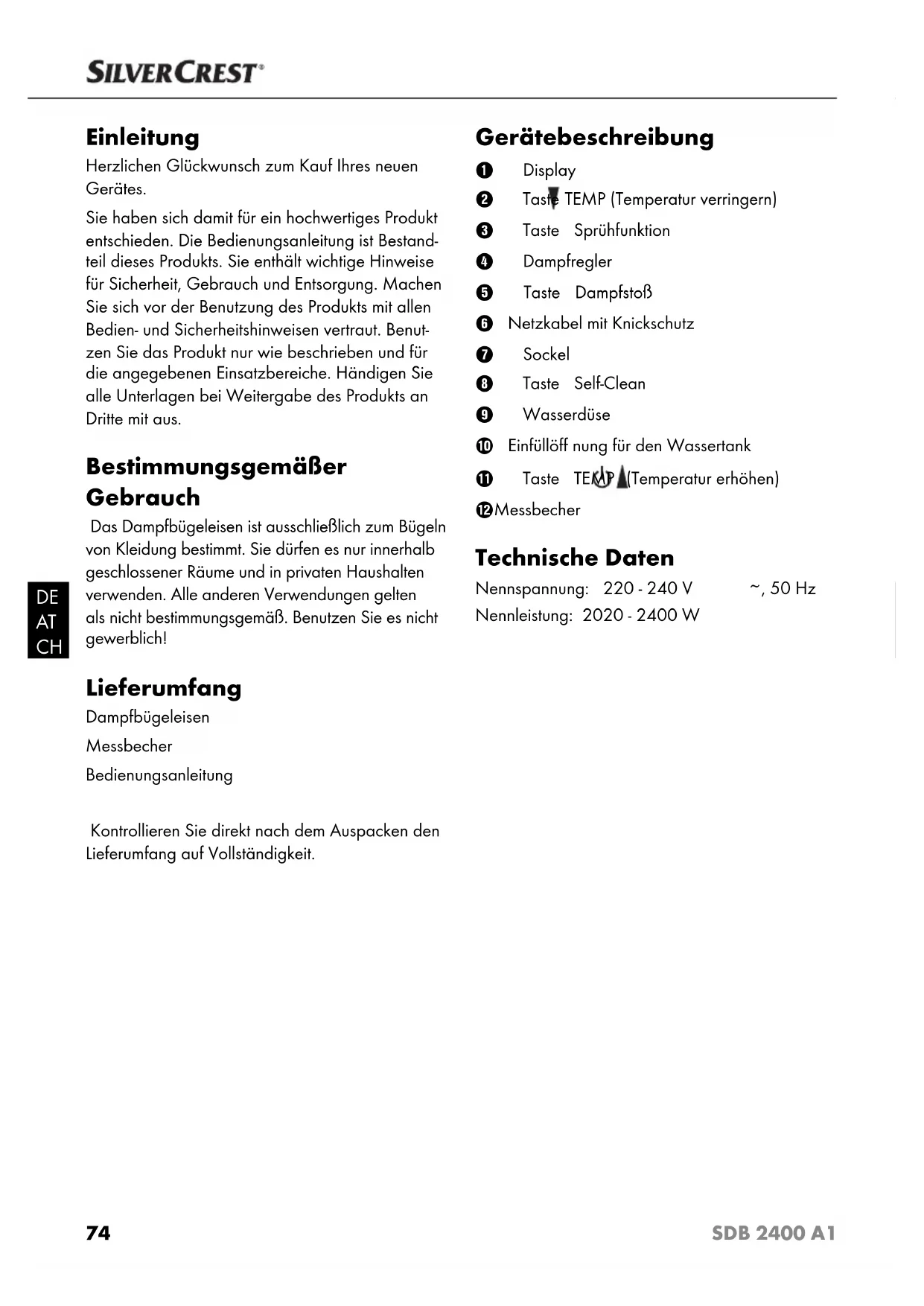 SDB 2200 D2 - Bügeleisen SILVERCREST - Kostenlose Bedienungsanleitung