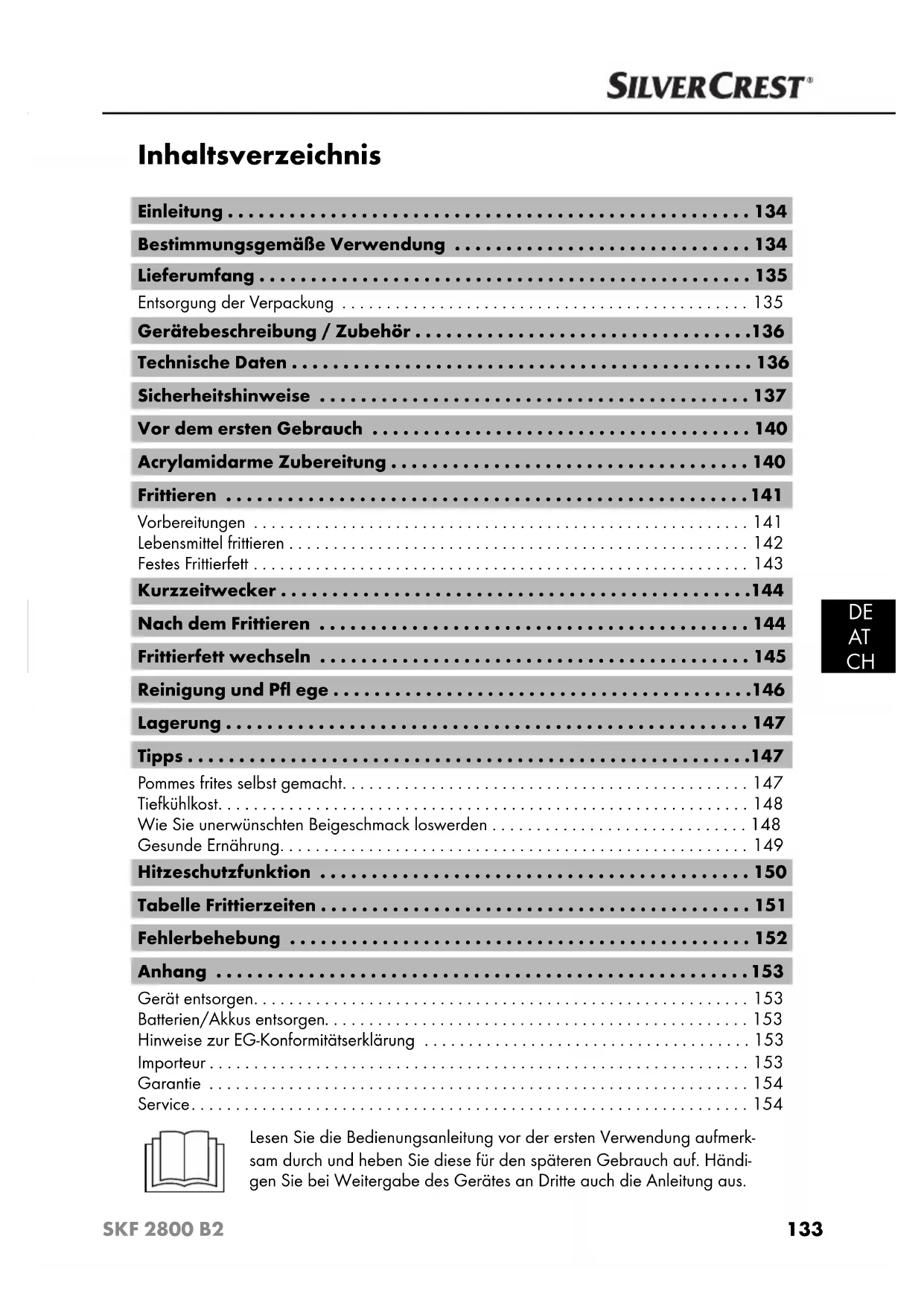 - Service Lesen Sie die Bedienungsanleitung vor der ersten Verwendung aufmerk- sam durch und heben Sie diese für den späteren Gebrauch auf. Händi- gen Sie bei Weitergabe des Gerätes an Dritte auch die Anleitung aus. IB_107216_SKF2800B2_FI_SE_DK_BE_NL.indb 133 23.01.15 12:20134 SKF 2800 B2 p. 154