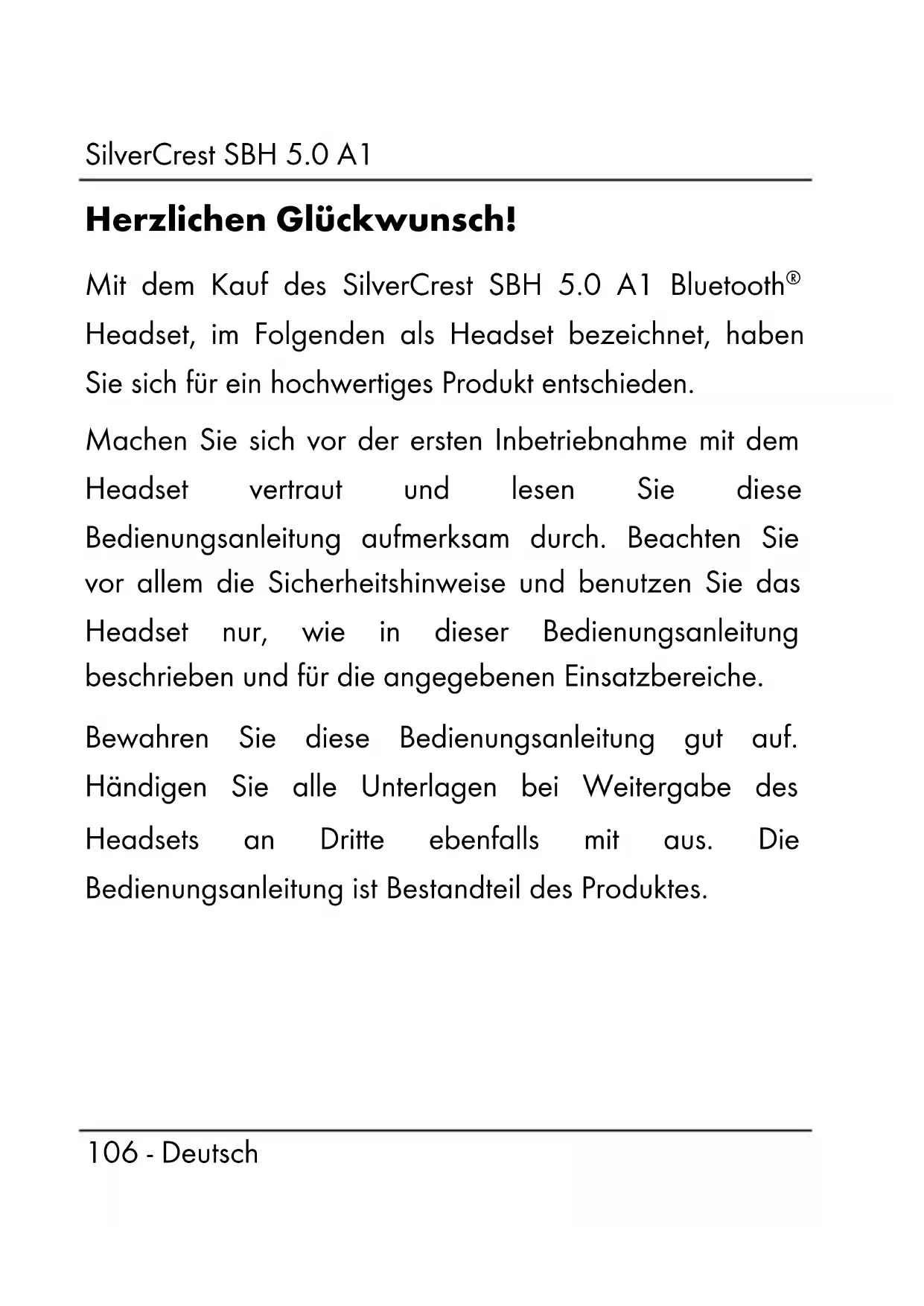 Herzlichen Glückwunsch! Mit dem Kauf des SilverCrest SBH 5.0 A1 Bluetooth