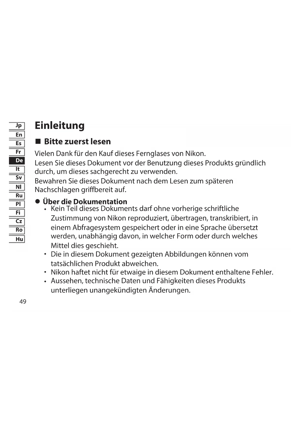 Bitte zuerst lesen Vielen Dank für den Kauf dieses Fernglases von Nikon. Lesen Sie dieses Dokument vor der Benutzung dieses Produkts gründlich durch, um dieses sachgerecht zu verwenden. Bewahren Sie dieses Dokument nach dem Lesen zum späteren Nachschlagen griffbereit auf.