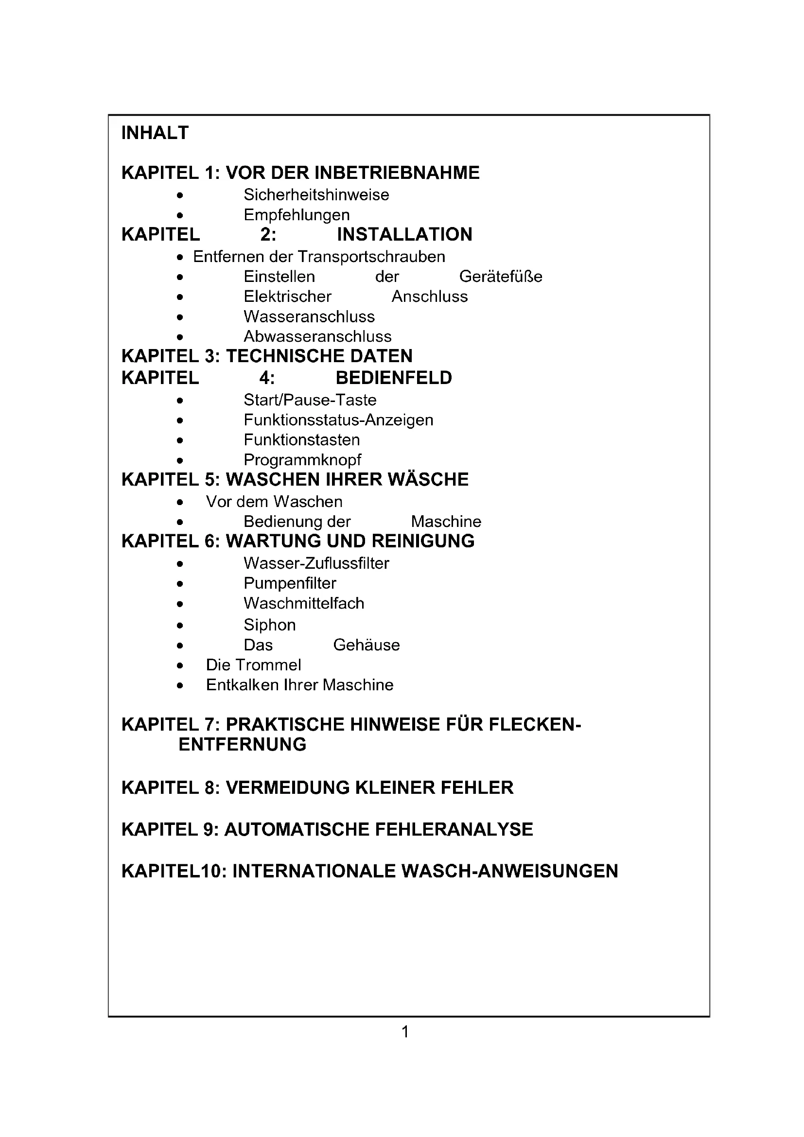 Vor der Inbetriebnahme Ihrer Waschmaschine müssen Sie die folgende. Punkte beachten.