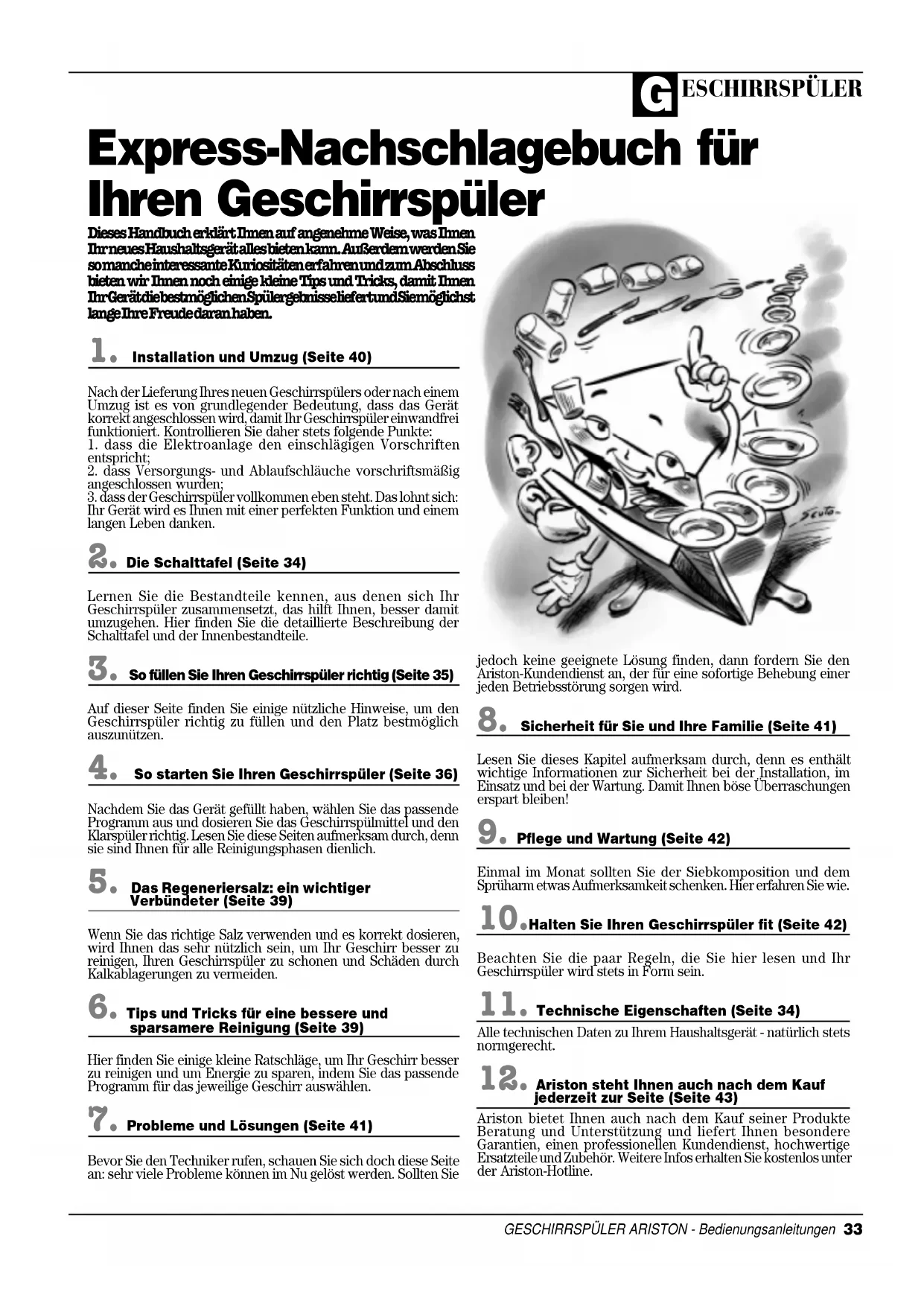 Dieses Handbuch erklärt Ihnen auf angenehme Weise, was Ihnen Ihr neues Haushaltsgerät alles bieten kann. Außerdem werden Sie so manche interessante Kuriositäten erfahren und zum Abschluss bieten wir Ihnen noch einige kleine Tips und Tricks, damit Ihnen Ihr Gerät die bestmöglichen Spülergebnisse liefert und Sie möglichst lange Ihre Freude daran haben. Express-Nachschlagebuch für Ihren Geschirrspüler