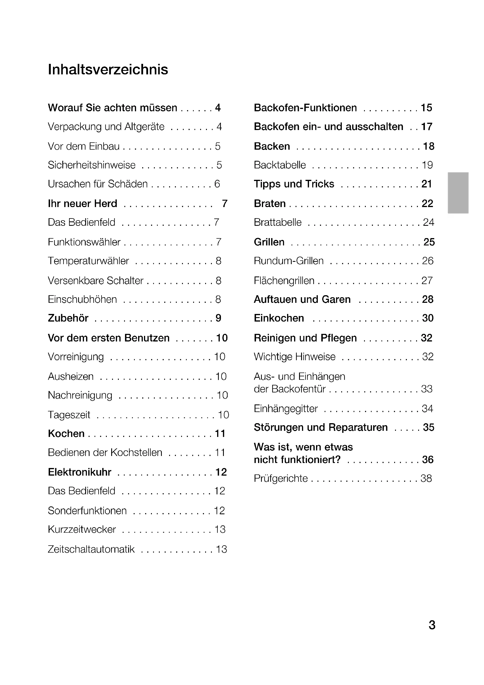 - Inhaltsverzeichnis Backofen-Funktionen p. 15