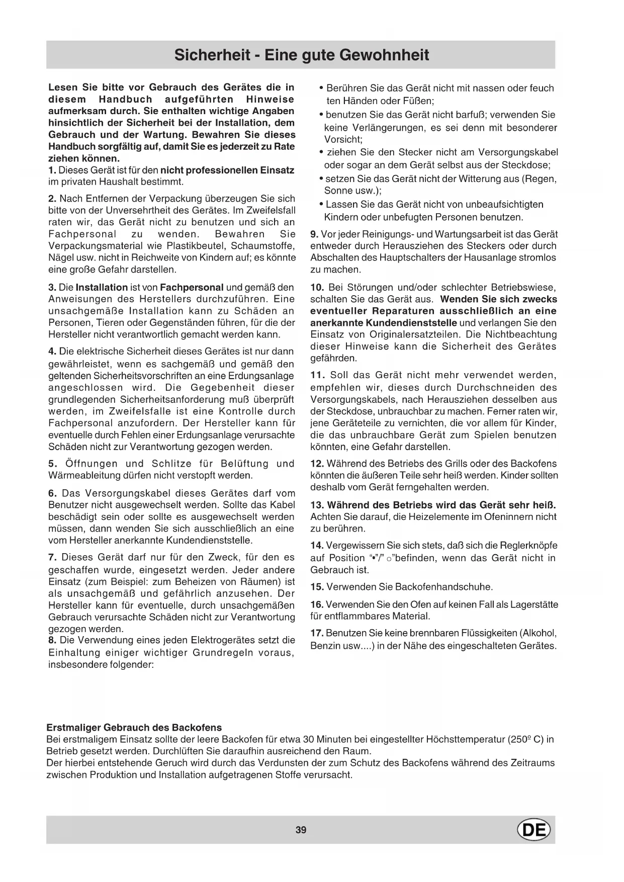 12. Während des Betriebs des Grills oder des Backofens