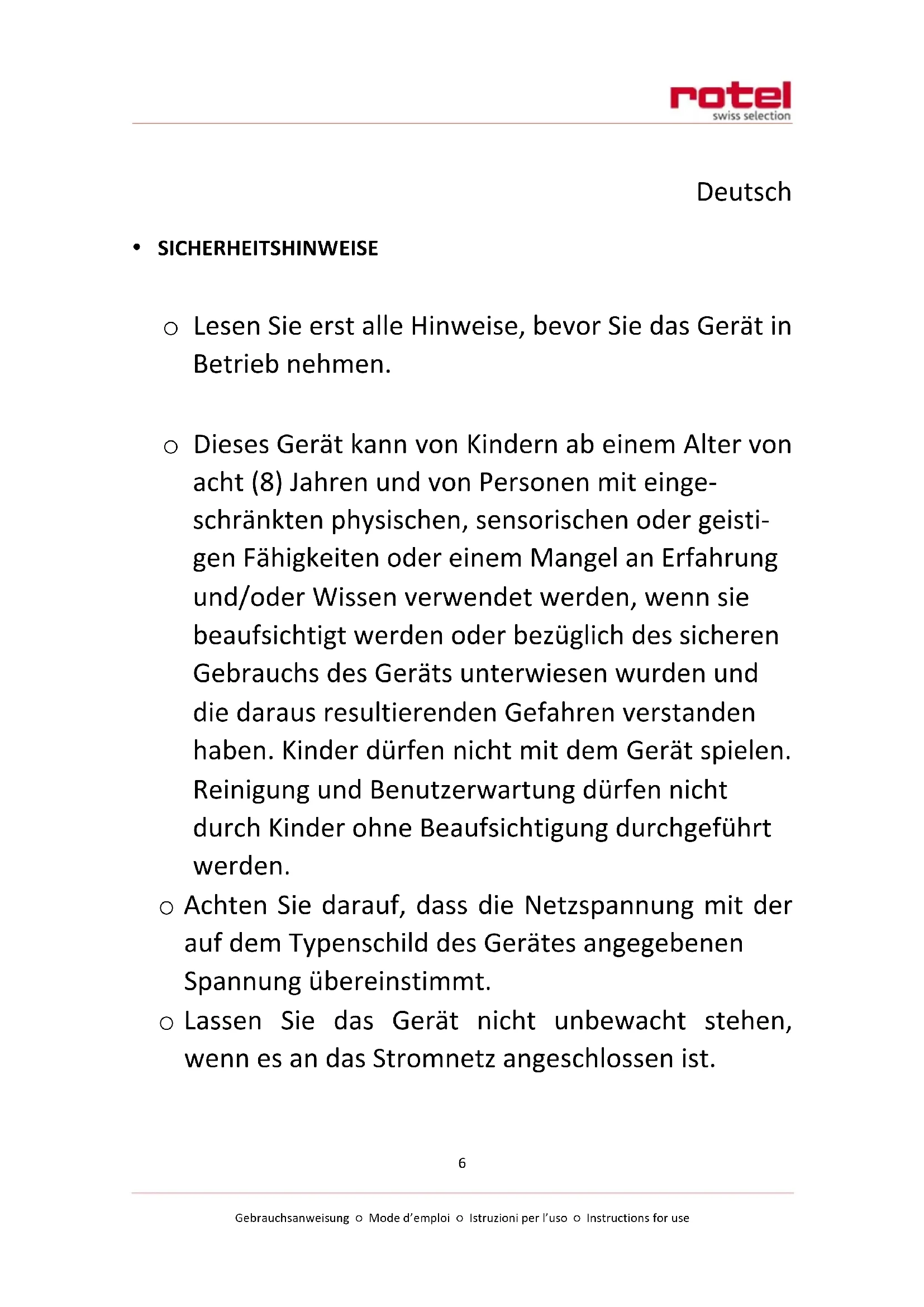 Für eine sachgerechte Entsorgung ist das Gerät dem Fachhändler, der Servicestelle oder der Firma Rotel AG zurückzugeben.