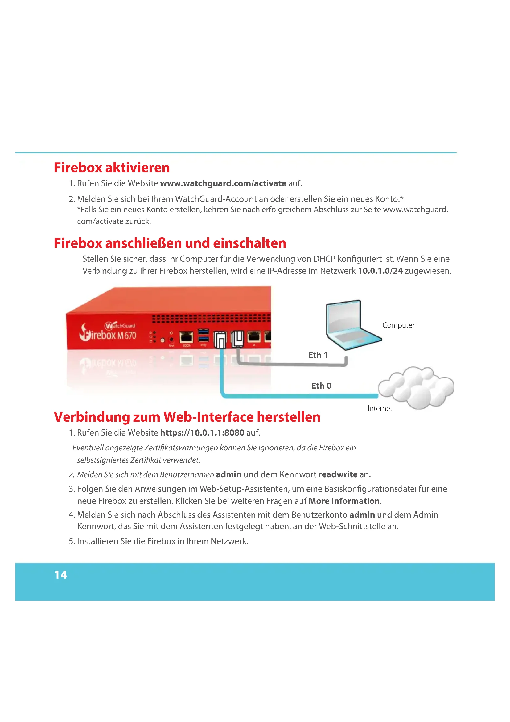 5. Installieren Sie die Firebox in Ihrem Netzwerk.