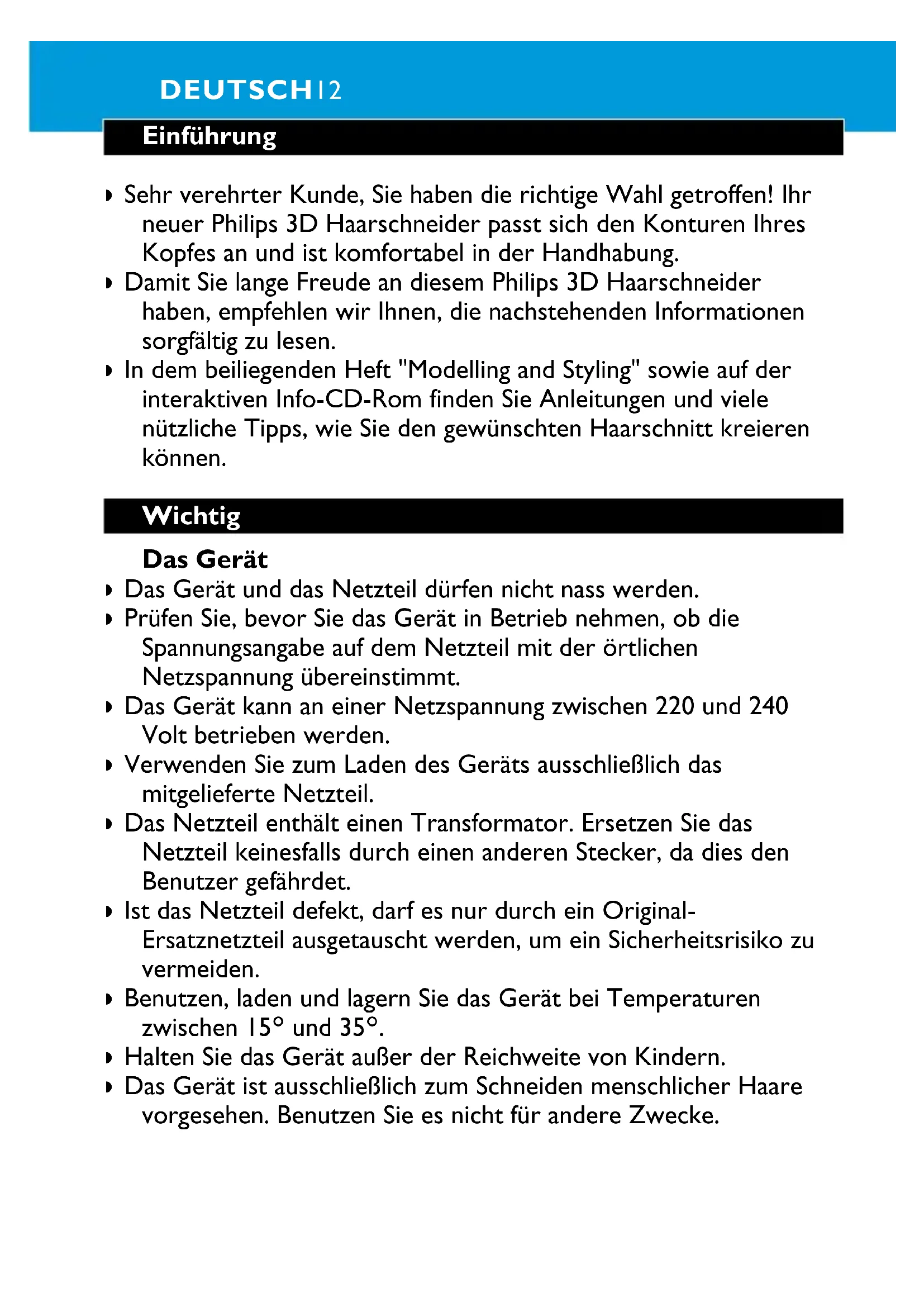 Finden Sie kostenlos die Bedienungsanleitung des Geräts HQC888 PHILIPS als PDF.