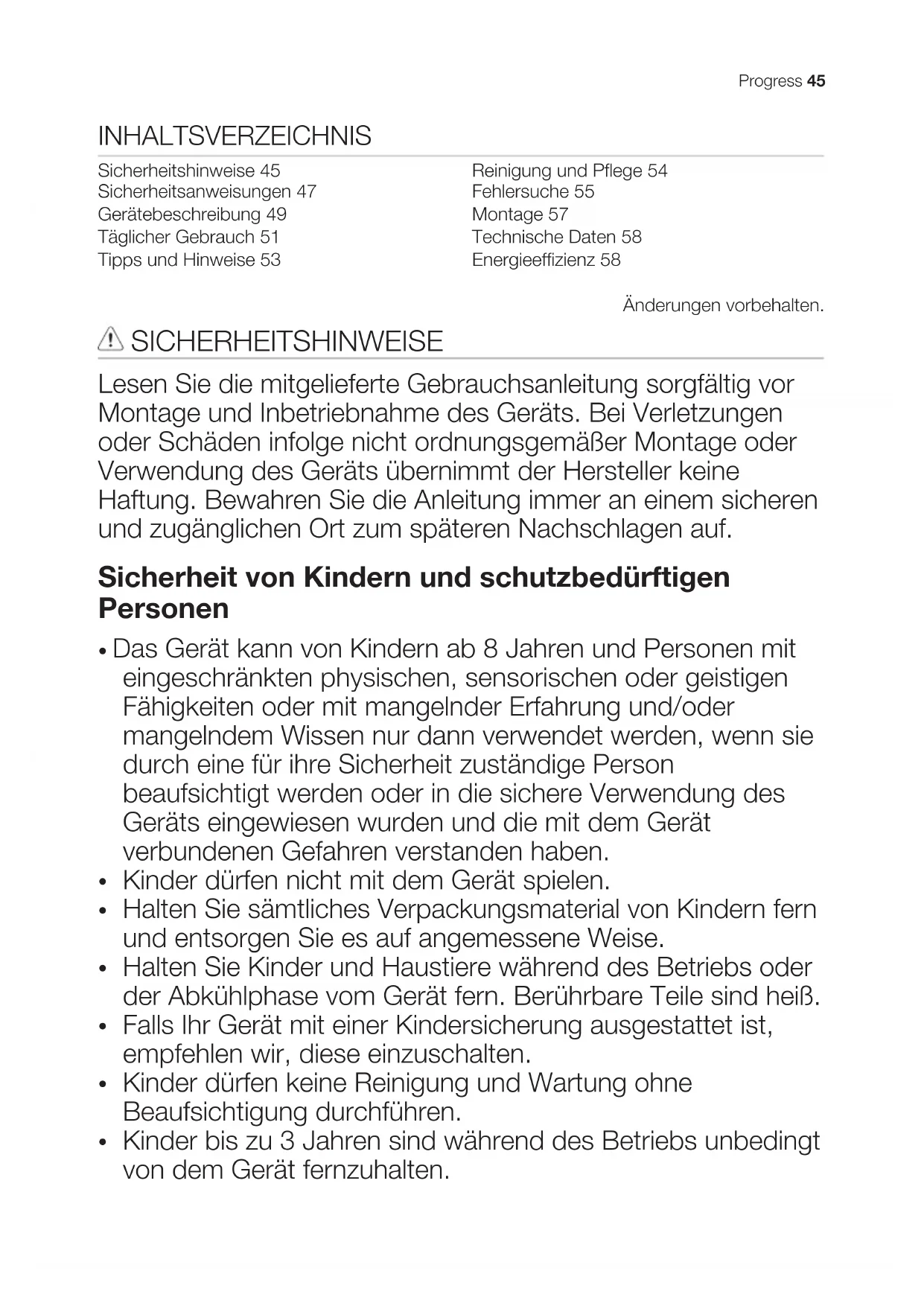 - Kinder dürfen keine Reinigung und Wartung ohne Beaufsichtigung durchführren.