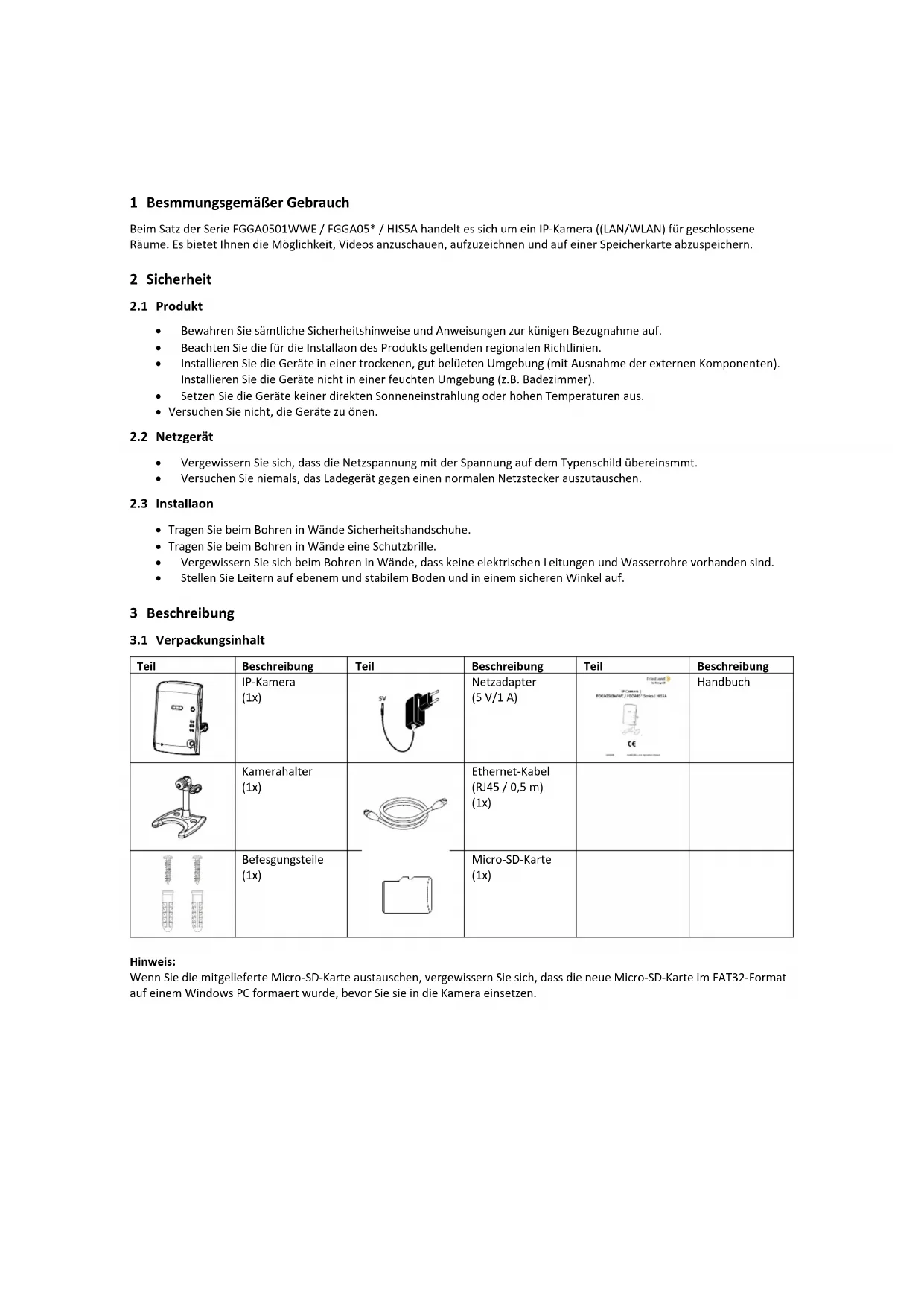 Laden Sie die Anleitung für Ihr Überwachungskamera kostenlos im PDF-Format! Finden Sie Ihr Handbuch FGGA0501WWE - FRIEDLAND und nehmen Sie Ihr elektronisches Gerät wieder in die Hand. Auf dieser Seite sind alle Dokumente veröffentlicht, die für die Verwendung Ihres Geräts notwendig sind. FGGA0501WWE von der Marke FRIEDLAND.