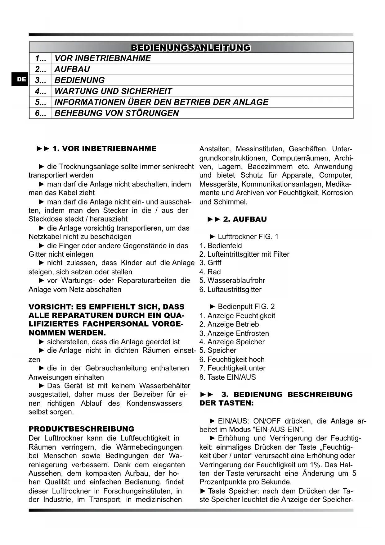 BEDIENUNGS- UND WARTUNGSANLEITUNG