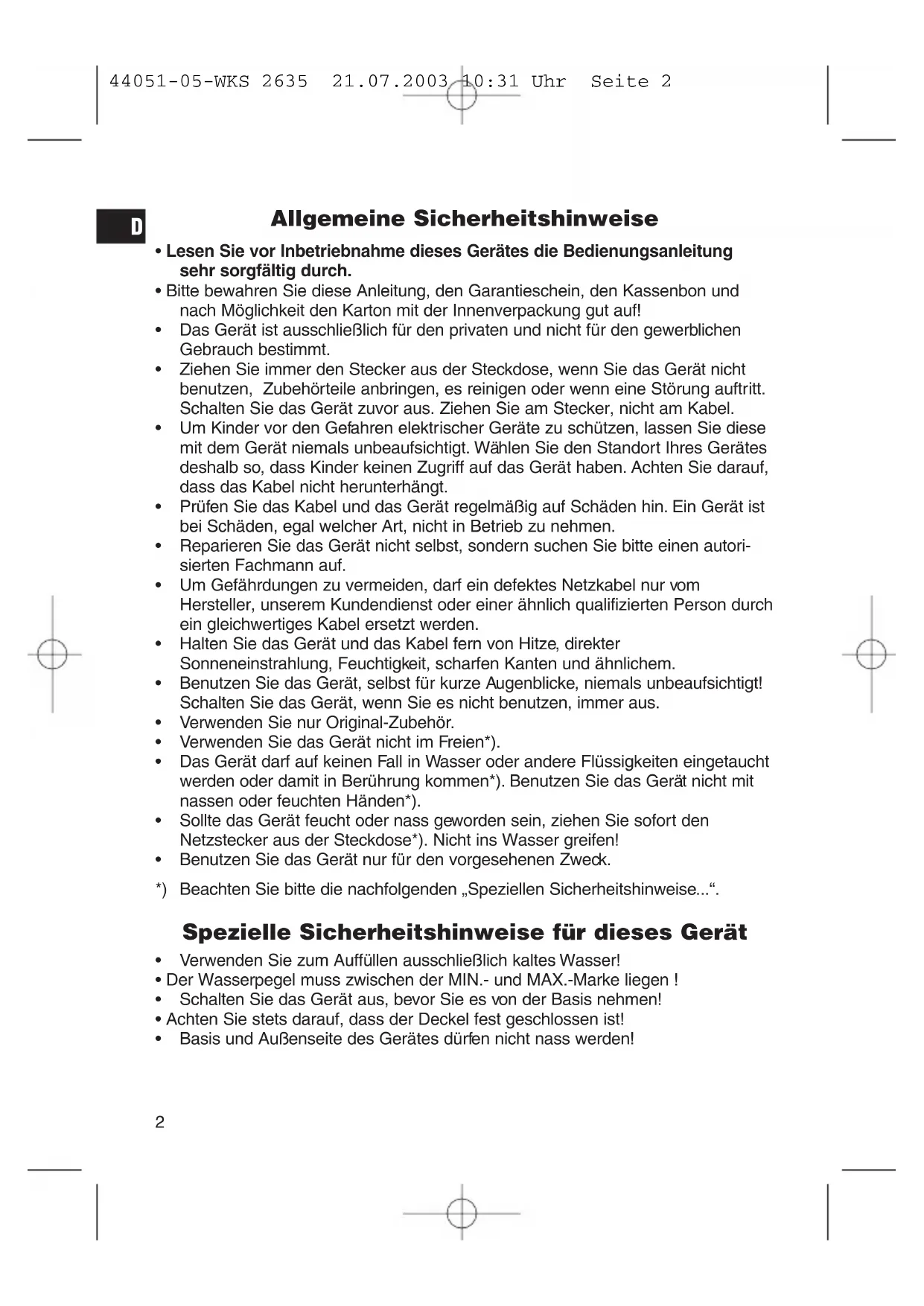 Bitte lesen Sie diese Bedienungsanleitung sorgfältig durch und bewahren Sie diese an einem sicheren Ort auf. Vor der ersten Verwendung kochen Sie das Gerätitte 2x mit frischem Wasser aus -Bitte benutzen Sie nur klares Wasser ohne Zusatzmittel.