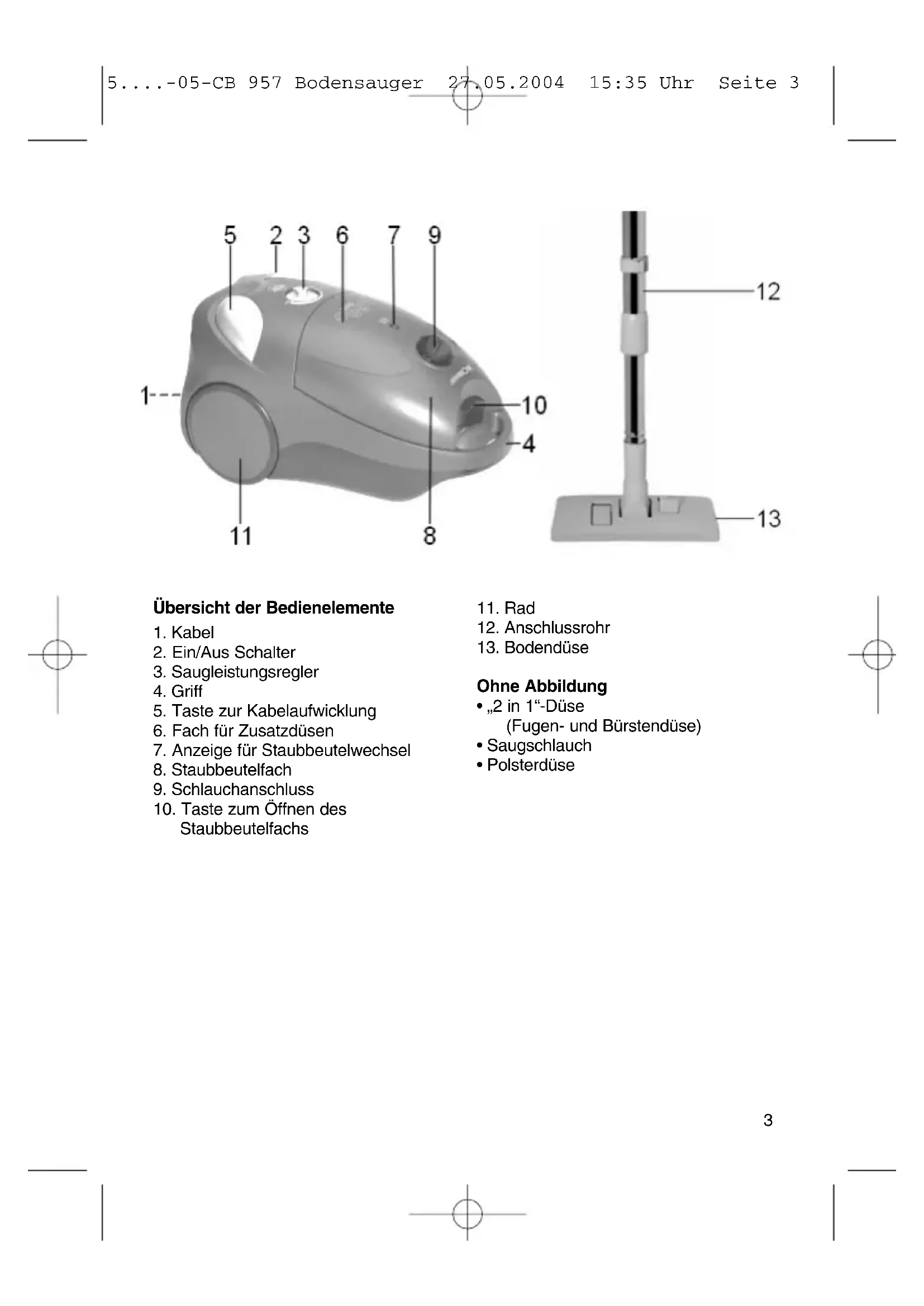 5....-05-CB 957 Bodensauger 27.05.2004 15:35 Uhr Seite 23 Übersicht der Bedienelemente