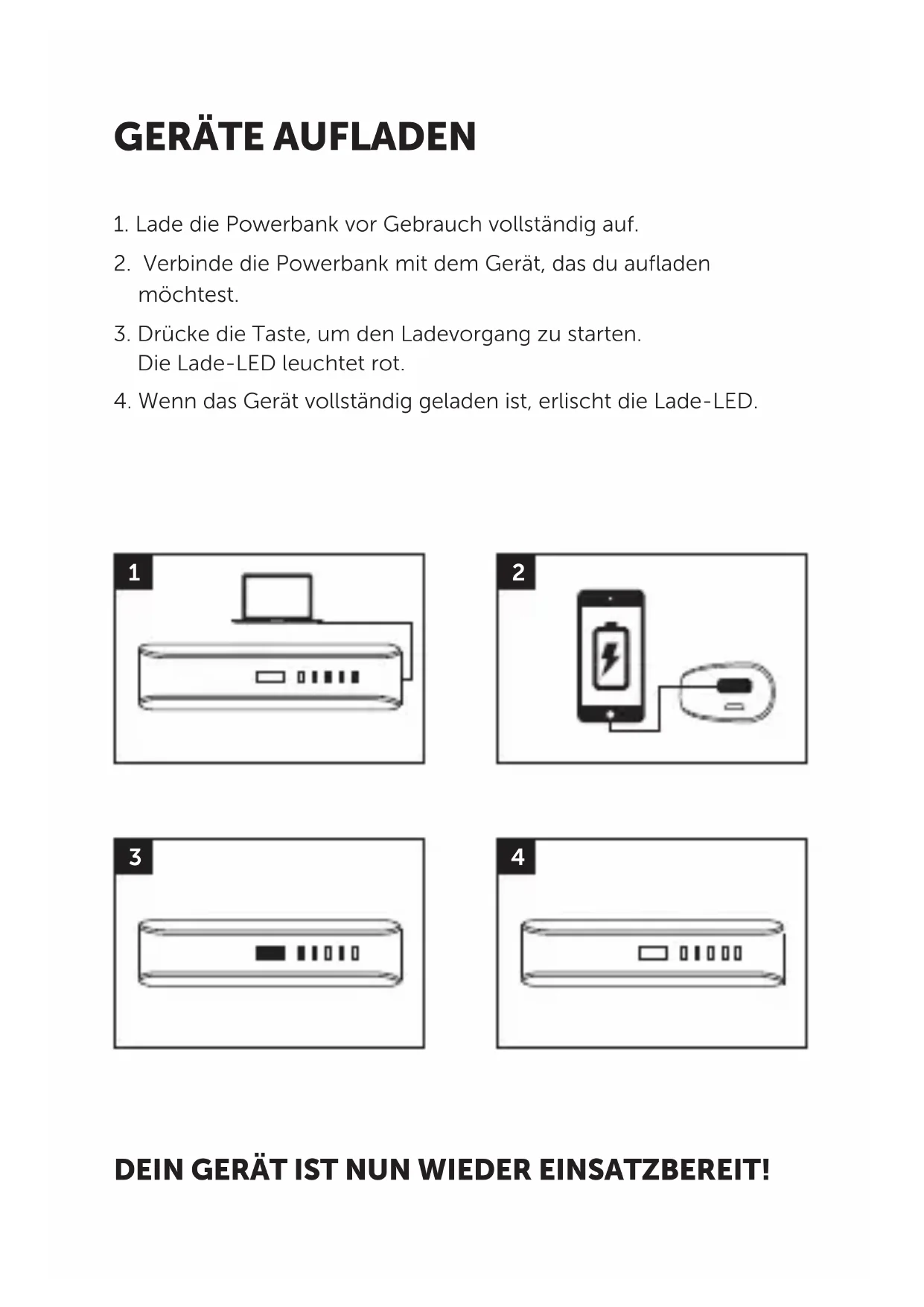 1. Lade die Powerbank vor Gebrauch vollständig auf.
