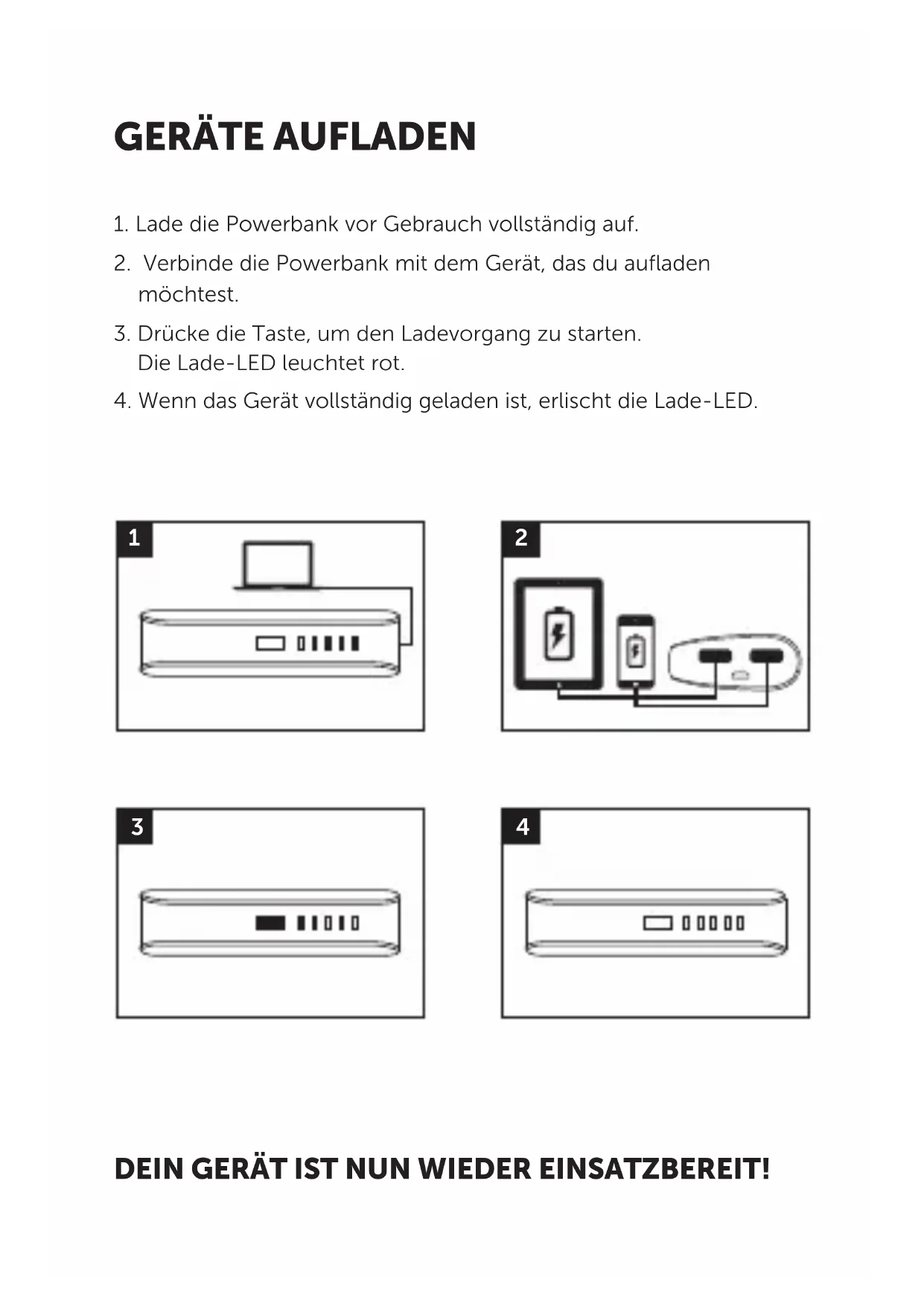 1. Lade die Powerbank vor Gebrauch vollständig auf.