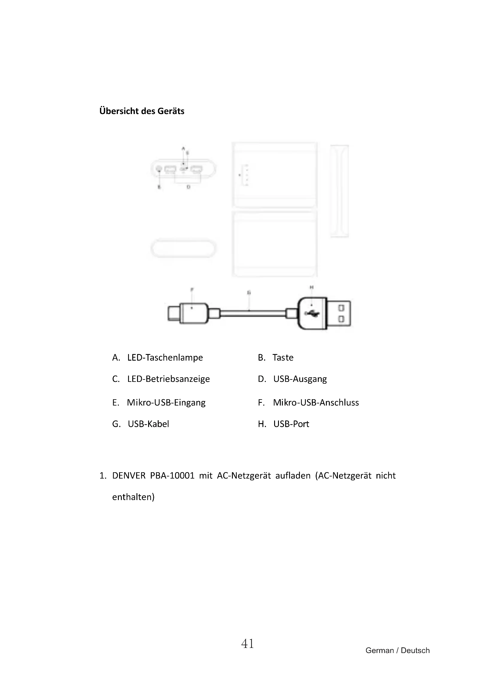 DENVER PBA-10001 aufladen (Abbildung 1/Abbildung 2)