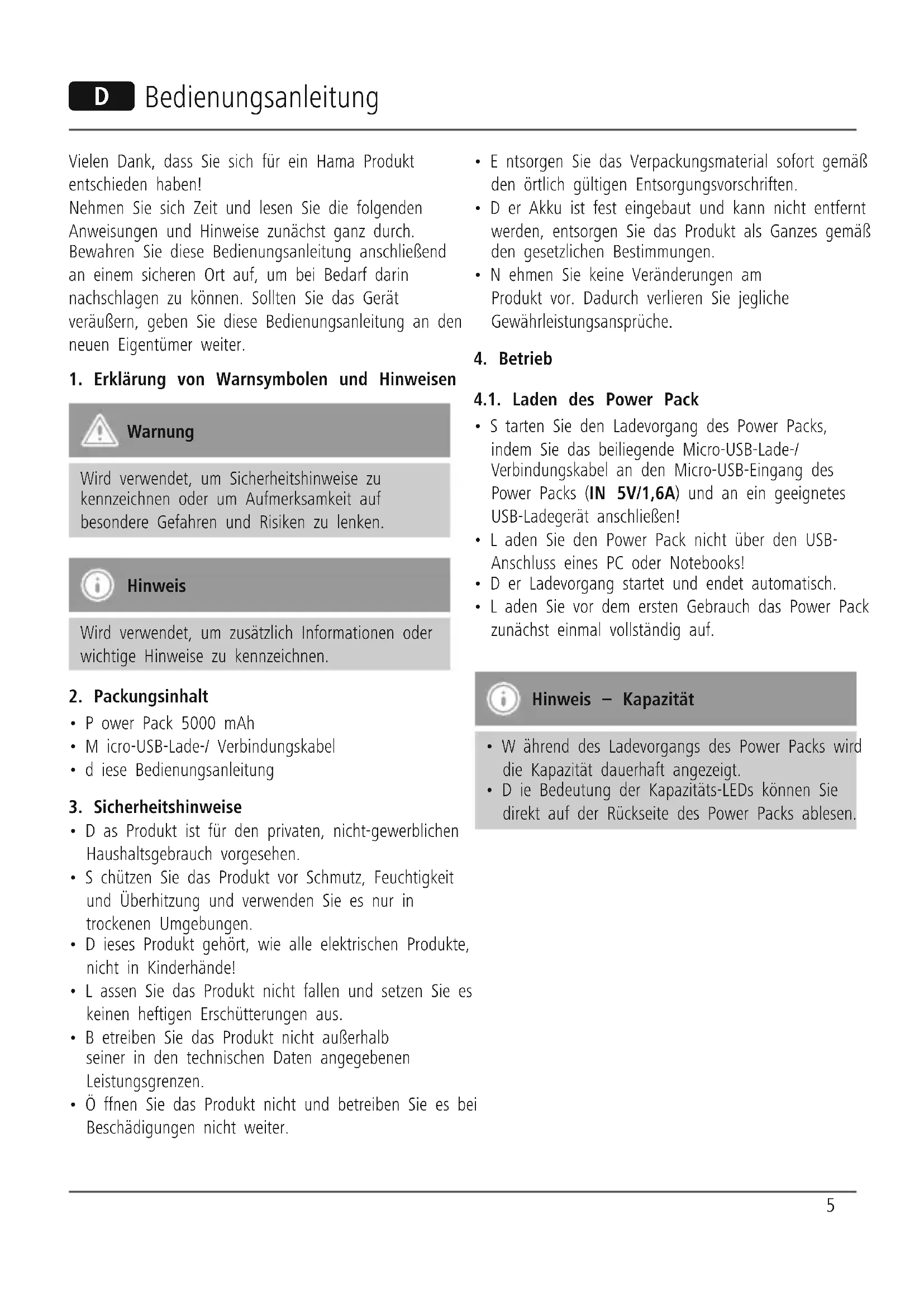 BEDIENUNGSANLEITUNG Power Pack 00128075 HAMA