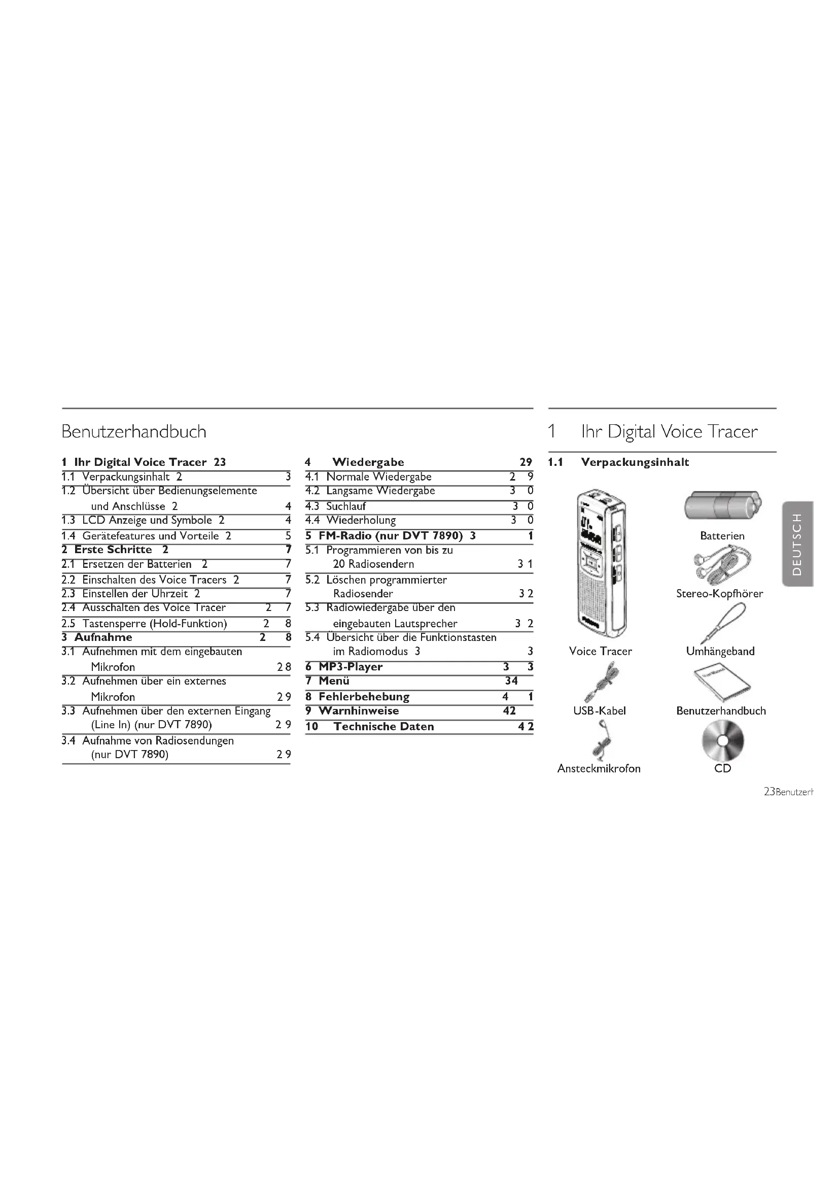 1.1 Verpackungsinhalt4 Wiedergabe 29