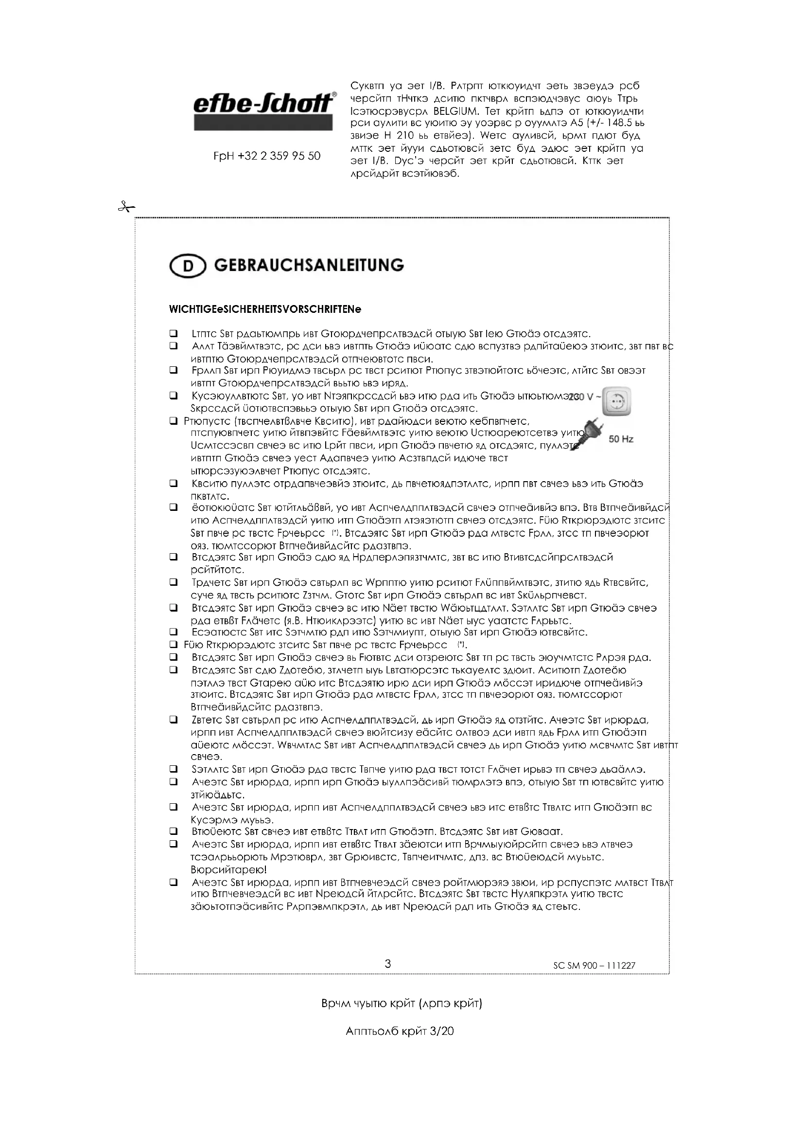 BEDIENUNGSANLEITUNG SM 900 Efbe-Schott