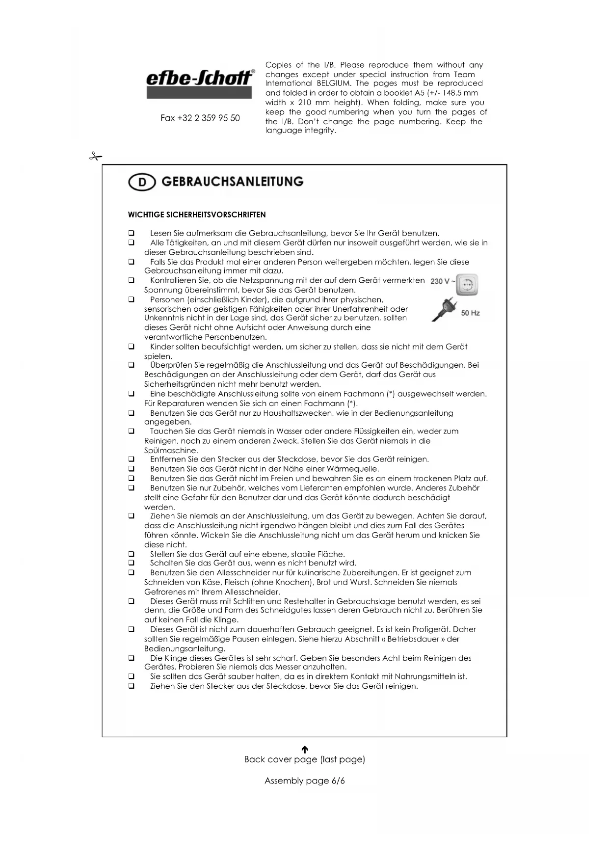 Laden Sie die Anleitung für Ihr Schneidemaschine kostenlos im PDF-Format! Finden Sie Ihr Handbuch AS 210 - Efbe-Schott und nehmen Sie Ihr elektronisches Gerät wieder in die Hand. Auf dieser Seite sind alle Dokumente veröffentlicht, die für die Verwendung Ihres Geräts notwendig sind. AS 210 von der Marke Efbe-Schott.