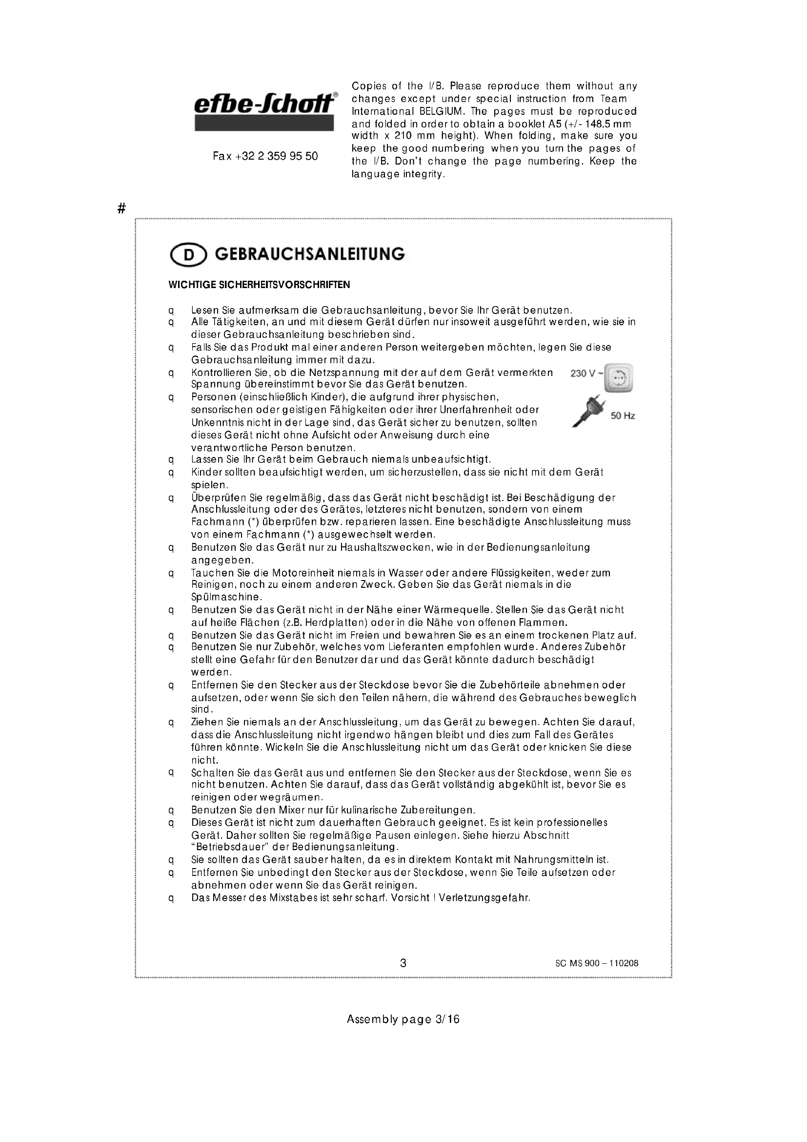 Finden Sie kostenlos die Bedienungsanleitung des Geräts MS 900 Efbe-Schott als PDF.