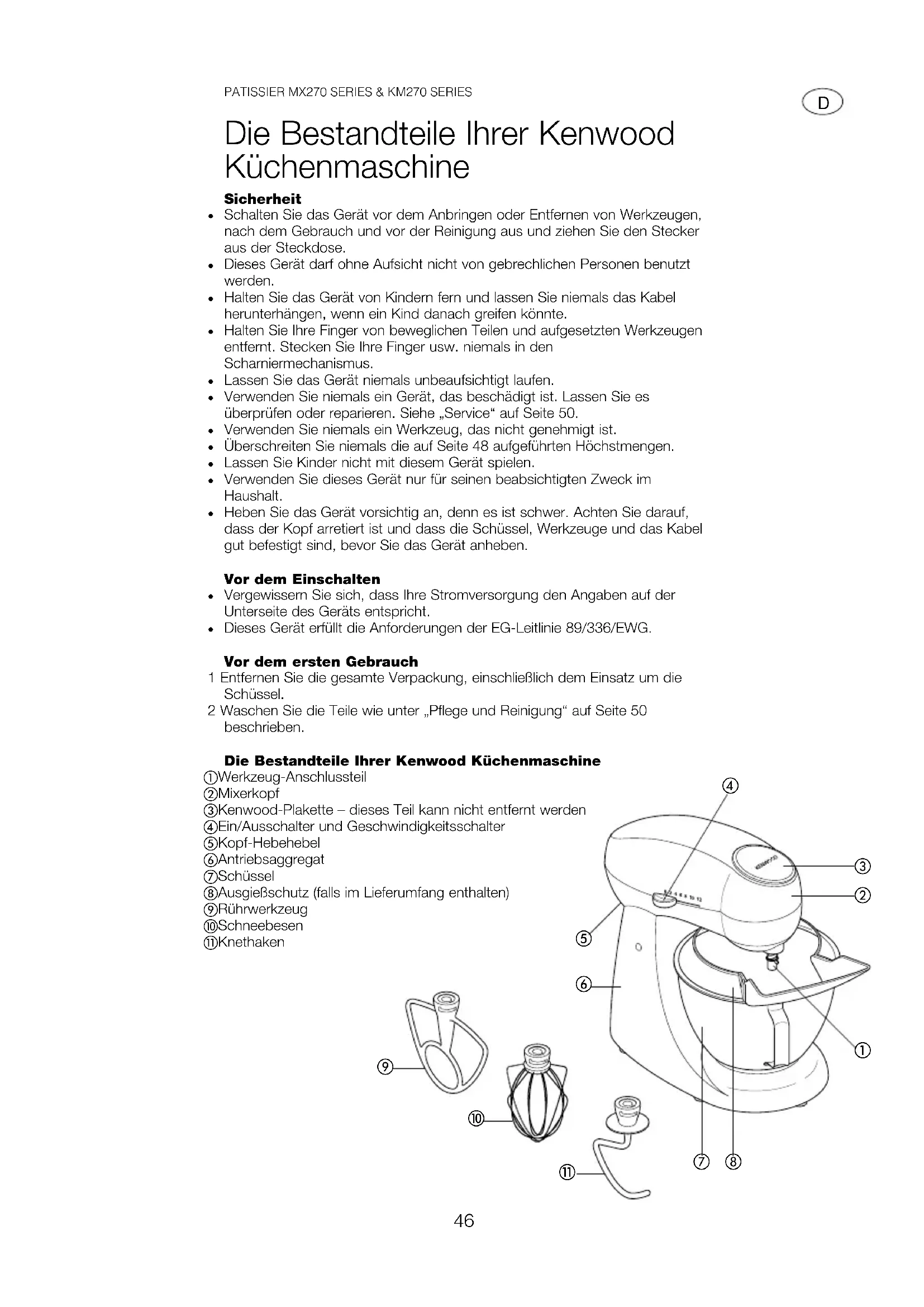 Die Bestandteile Ihrer Kenwood Küchenmaschine Sicherheit