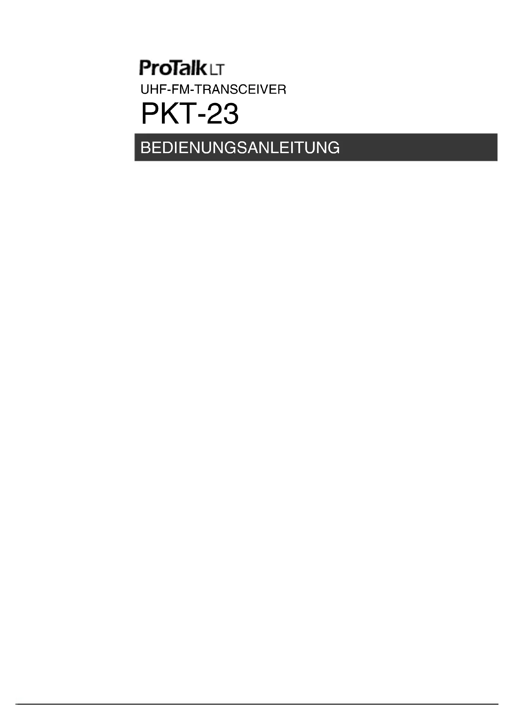 - Mentre la funzione Super Lock-P è attiva è possibile trasmettere, disattivare lo squelch, effettuare il controllo, regolare il volume e accendere/spegnere l’apparecchio.UHF-FM-TRANSCEIVER PKT-23 BEDIENUNGSANLEITUNGVIELEN DANK Vielen Dank, dass Sie für Ihre PMR446-Anwendungen KENWOOD gewählt haben. Diese Bedienungsanleitung behandelt nur die grundlegende Bedienung Ihres PMR446 (Private Mobile Radio). Fragen Sie Ihren Händler nach Informationen über individuelle Zusatzfunktionen, mit denen Ihr Radio ausgestattet sein kann. BETRIEBSBEDINGUNGEN Offenes Gelände (keine Hindernisse): Bis 9,0 km Hinweis: Der oben genannte Bereich basiert auf Feldversuchen und kann je nach Ihren Betriebsbedingungen und Ihrem individuellen Transceiver variieren.D-i
