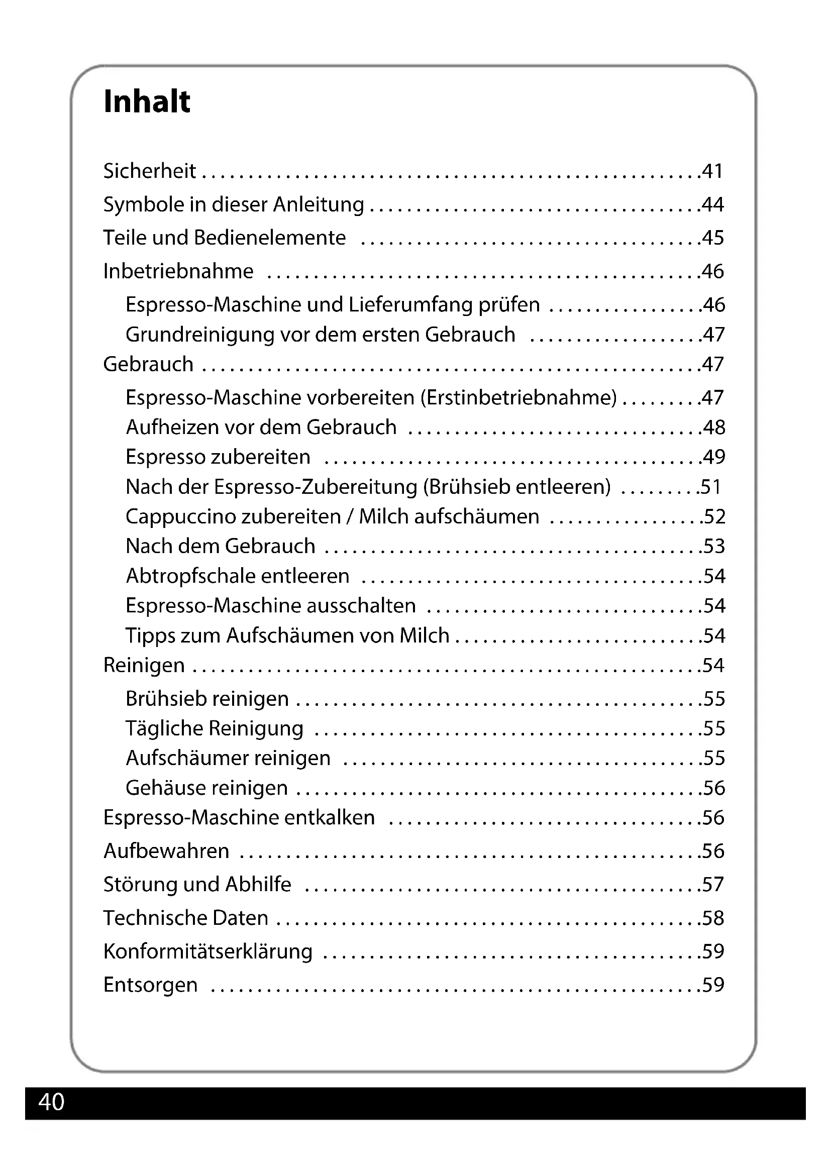 - Espresso zubereiten p. 49
