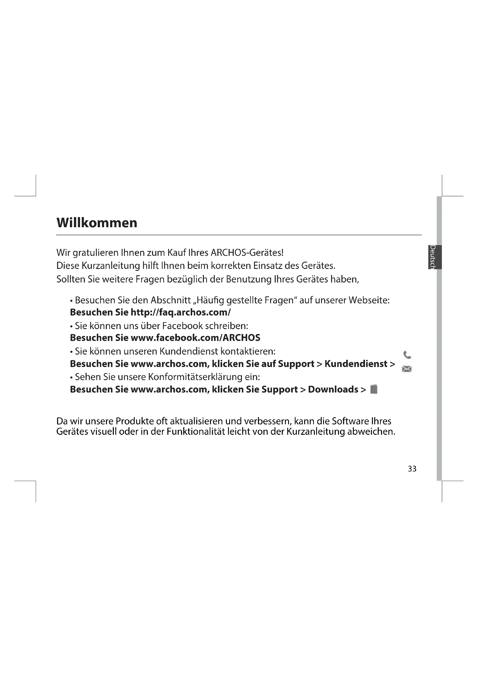 - Sie können uns über Facebook schreiben: Besuchen Sie www.facebook.com/ARCHOS