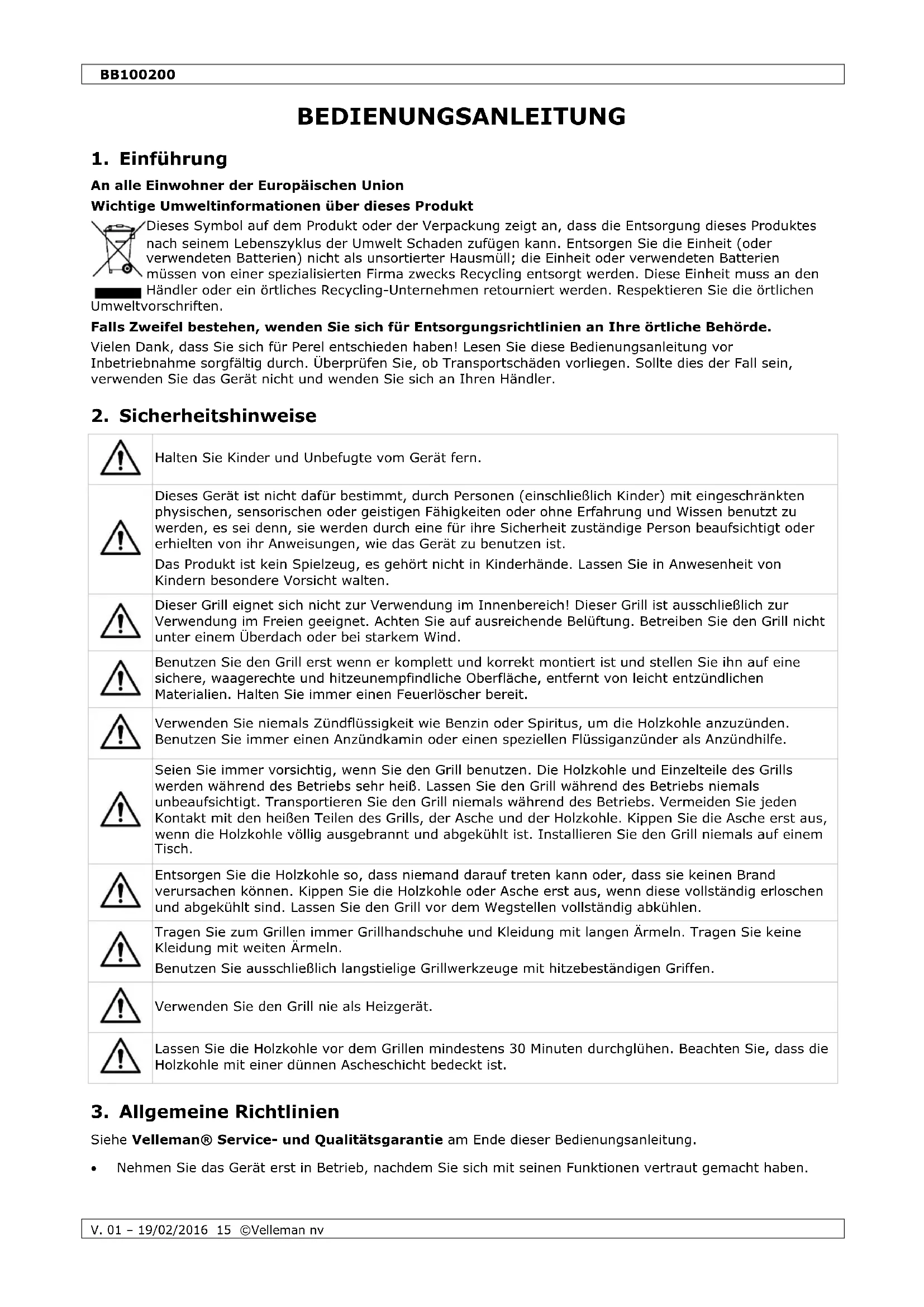 BEDIENUNGSANLEITUNG BB100200 Perel