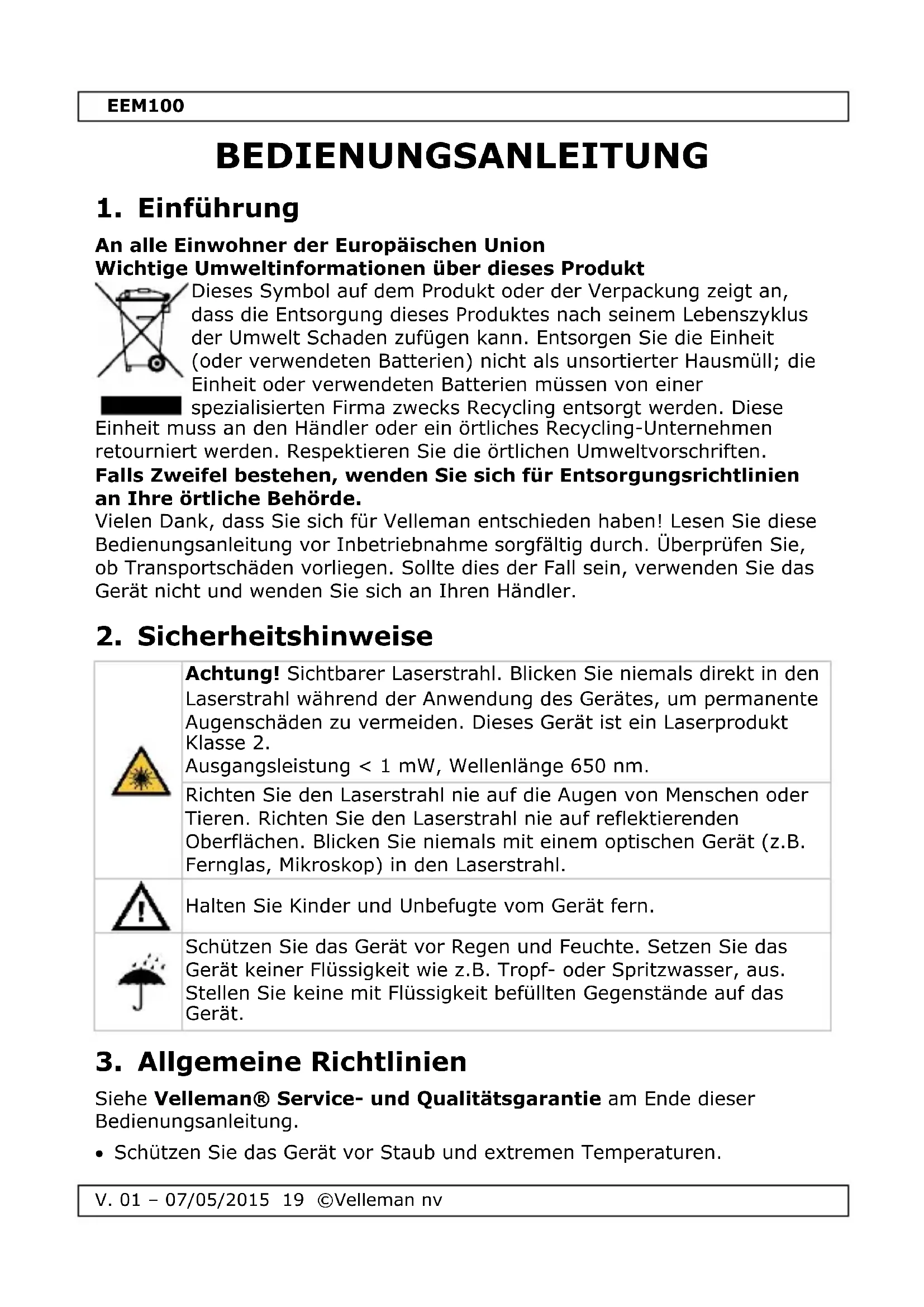 Siehe Velleman® Service- und Qualitätsgarantie am Ende dieser Bedienungsanleitung.