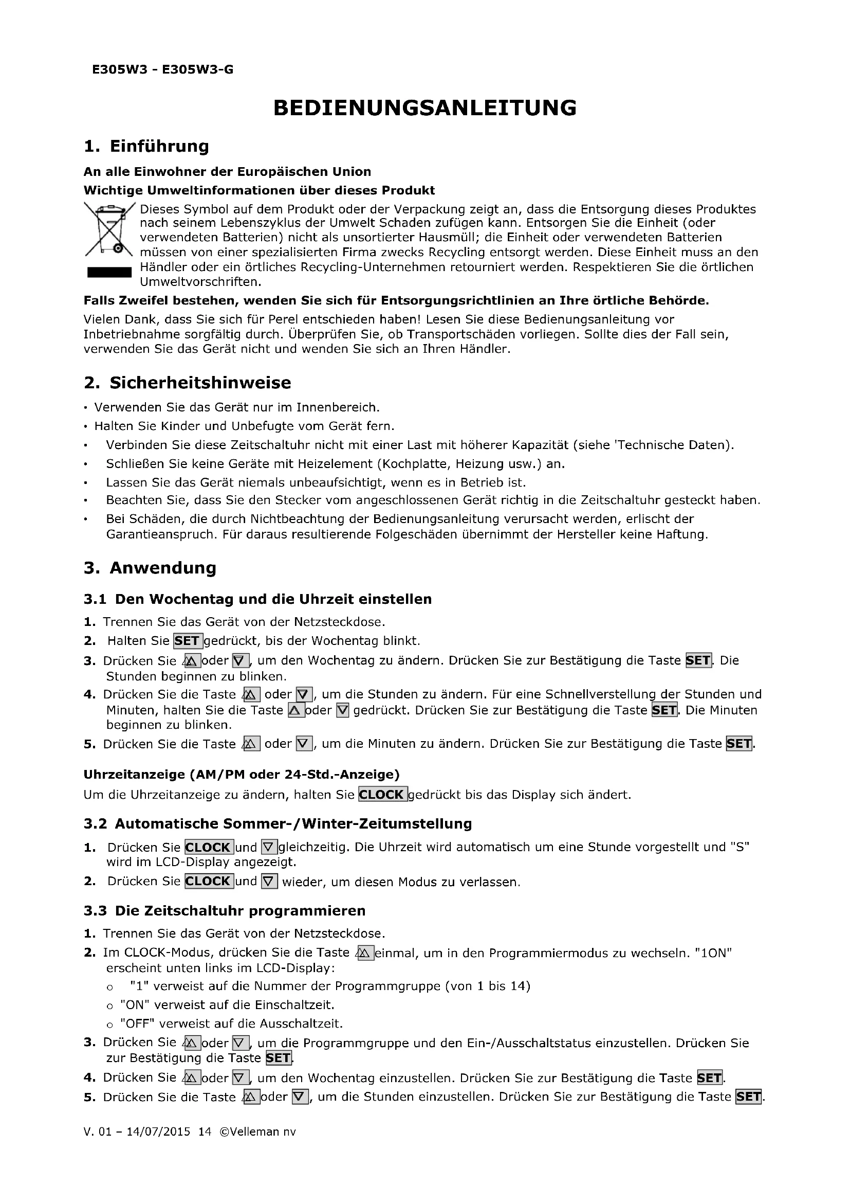 BEDIENUNGSANLEITUNG E305W3G Perel